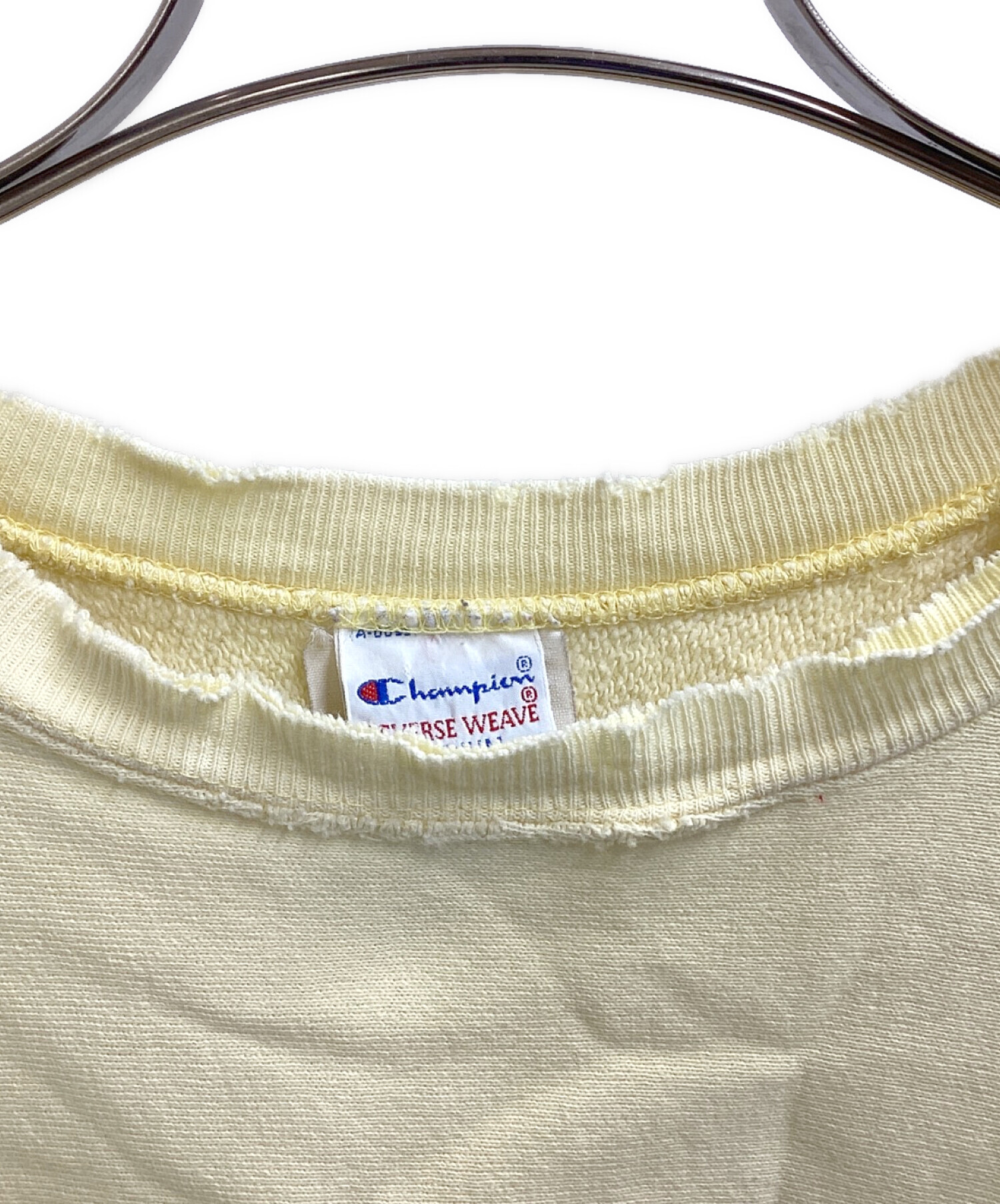 • Champion(チャンピオン)Champion (チャンピオン) リバースウィーブスウェット / USA製 / 刺繍タグ / 90s イエロー サイズ:Mの古着・服飾アイテム ダメージ有