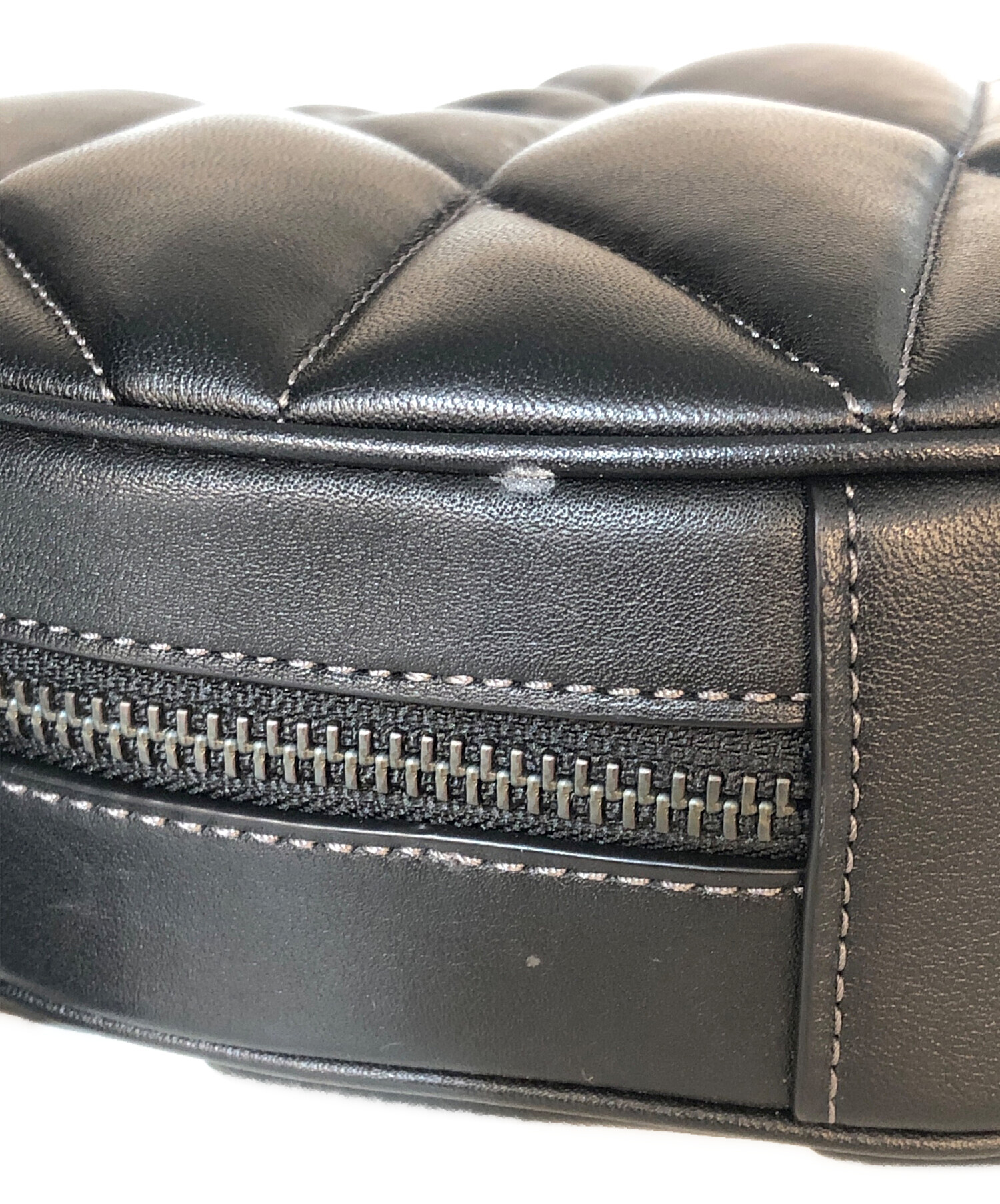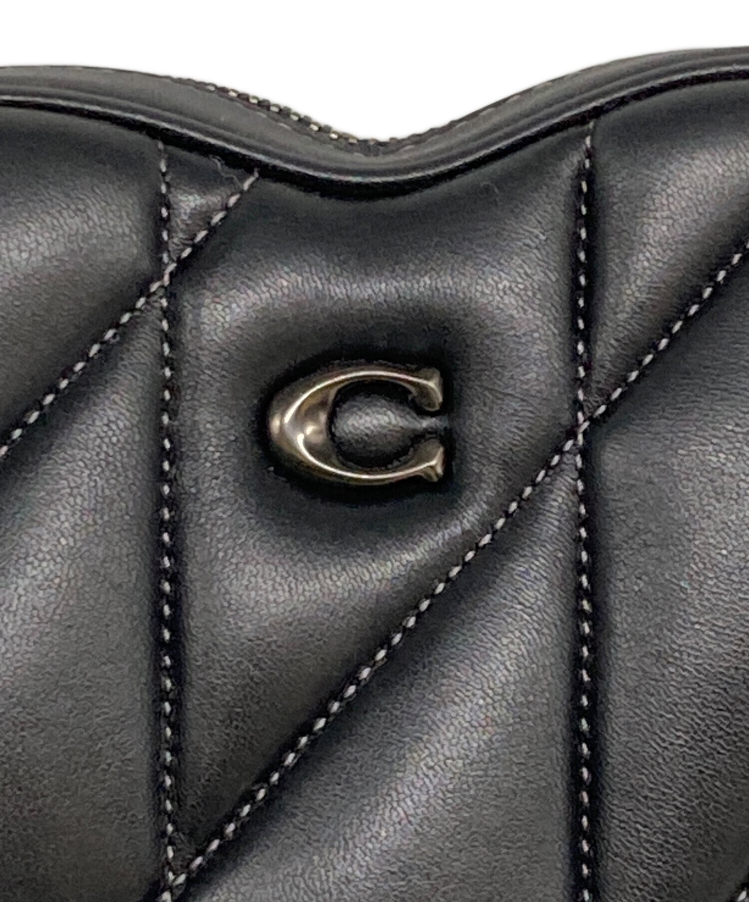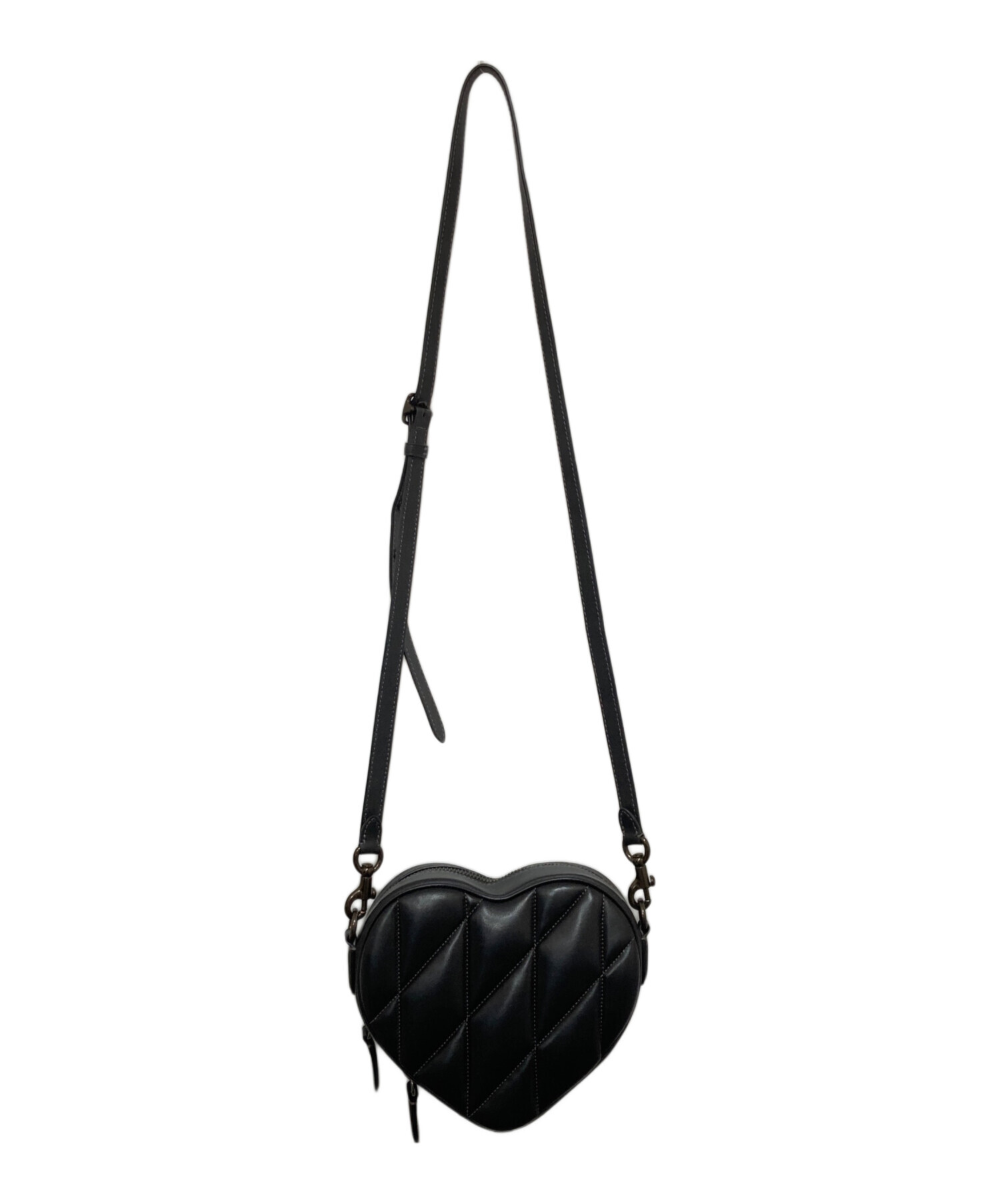 | スタッフコメント | 施されたキルティングと遊び心のあるハート型が印象的なショルダーバッグ。 重厚感がある見た目ながらも実際には軽量で、ジップが大きく開くため、かなり実用性があります。 スマートフォンや二つ折り財布が収納できるくらいの容量です。 |