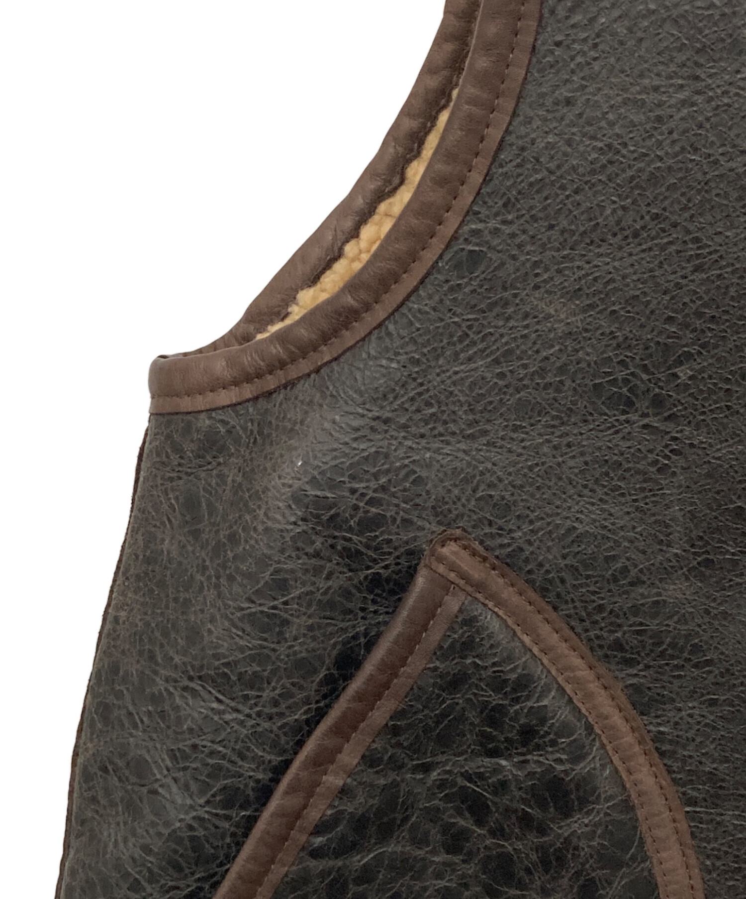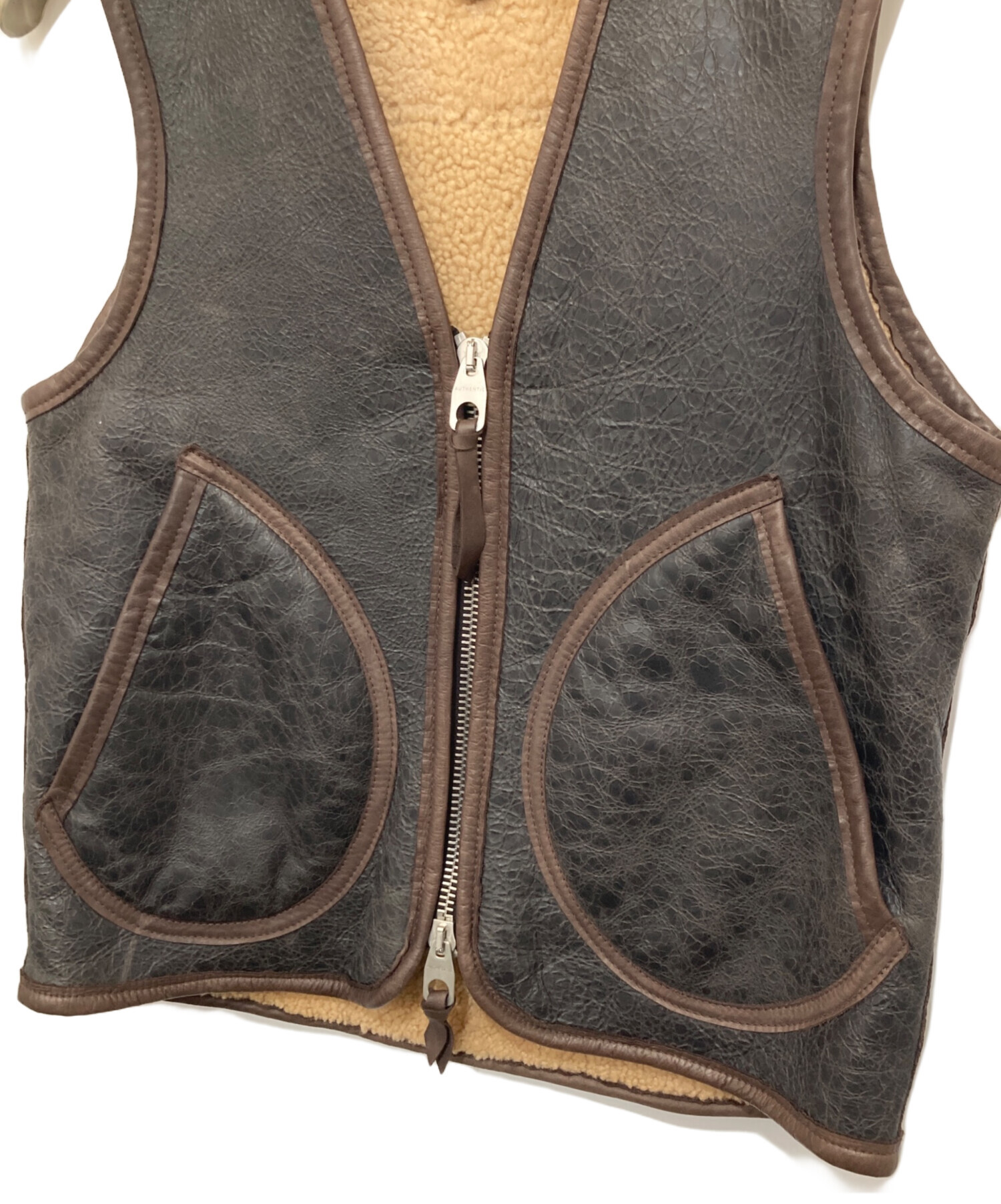 アイテム名 Short Deck Vest ムートンベスト レザーベスト ダブルジップ 8037-11-70000