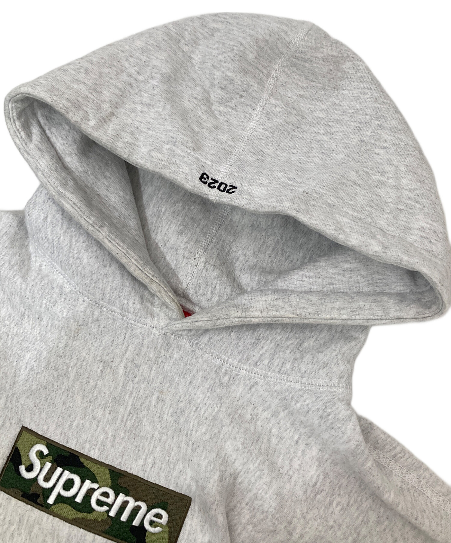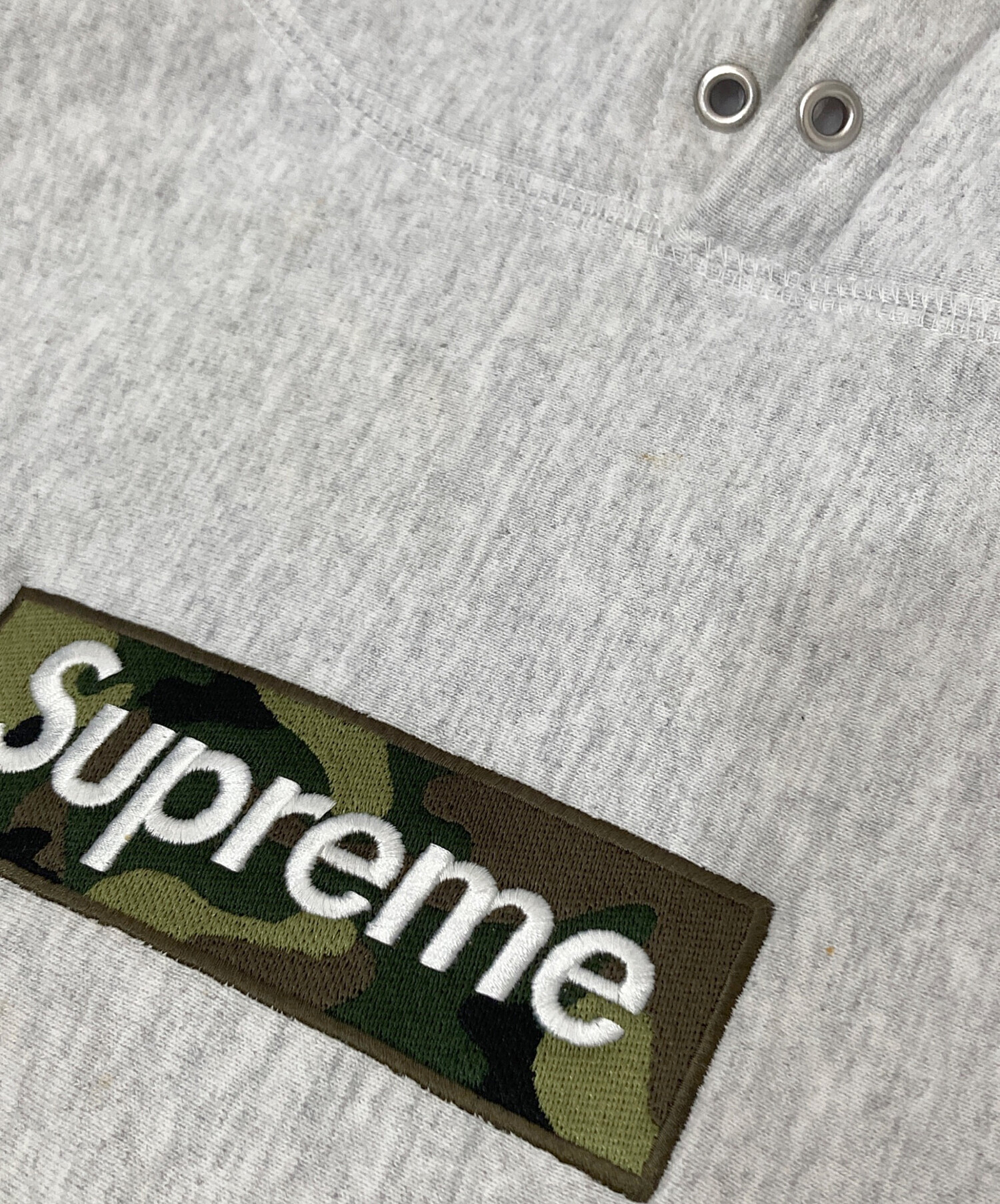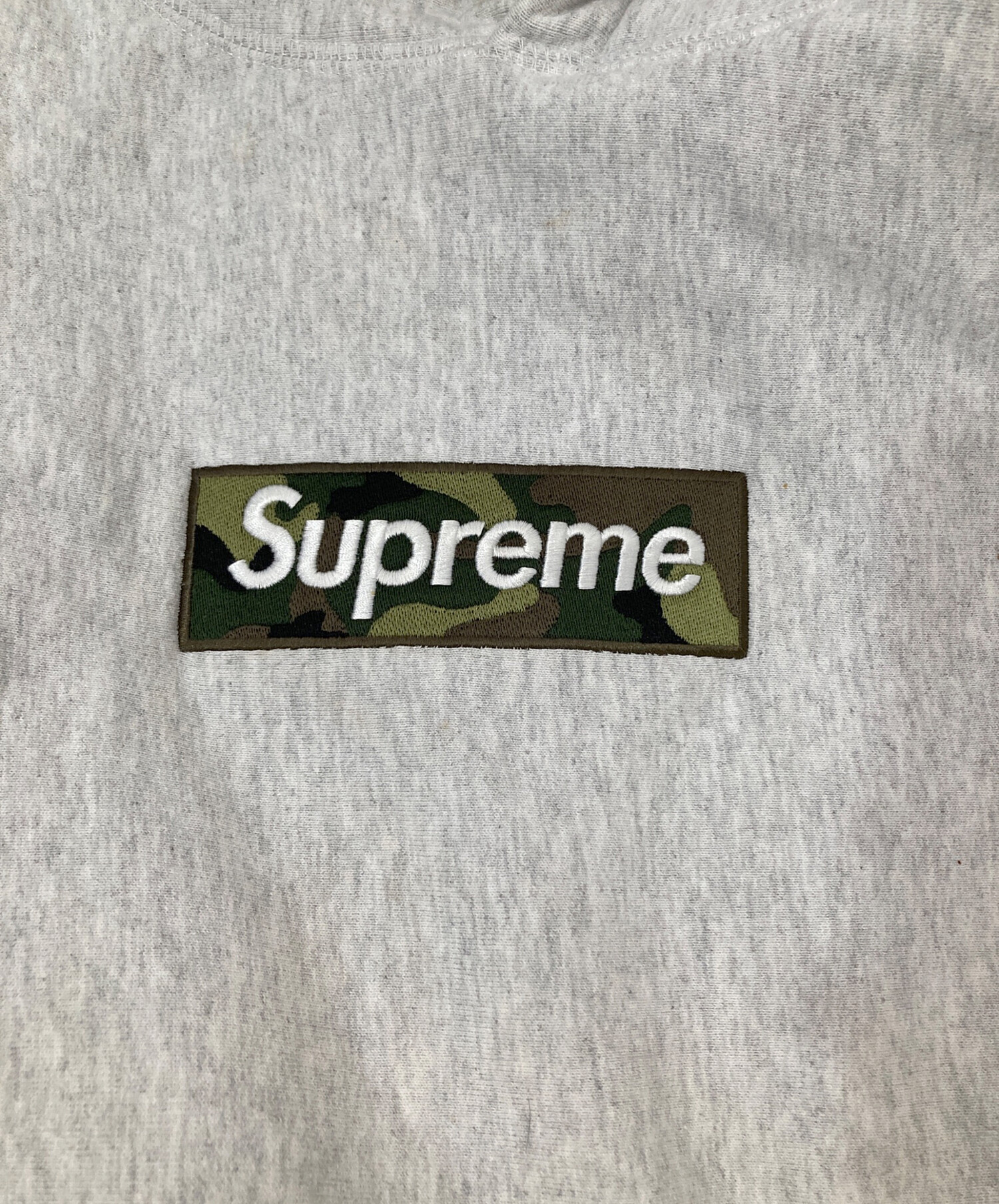 • SUPREME(シュプリーム)Supreme (シュプリーム) Box logo Hooded Sweatshirt 迷彩ボックスロゴ パーカー グレー サイズ:Sの古着・服飾アイテム ドローコード欠損