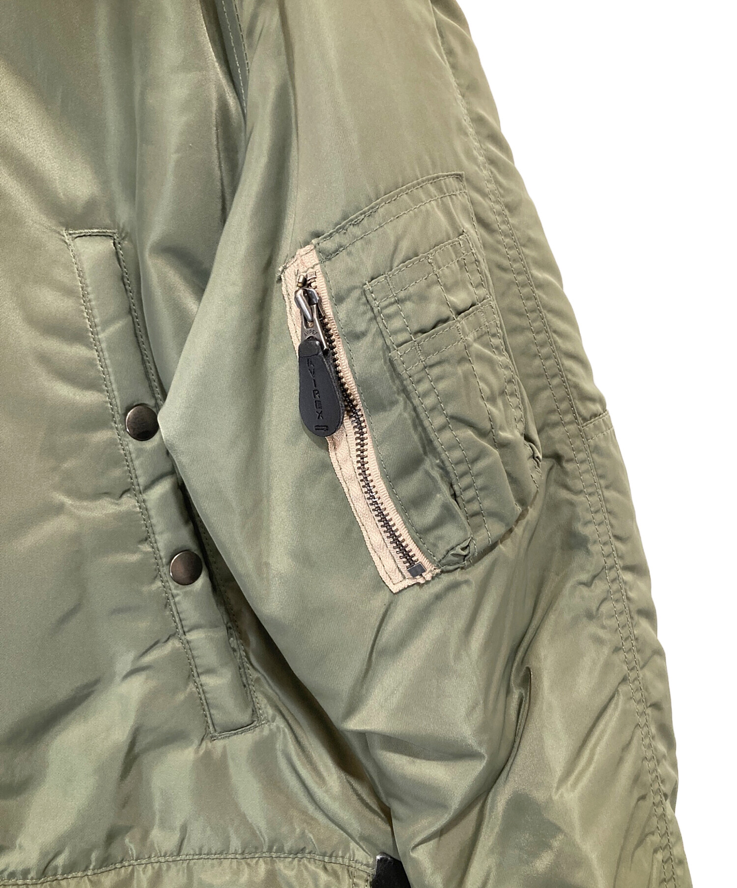 • AVIREX(アヴィレックス)AVIREX (アヴィレックス) N-3Bフライトジャケット Flight Jacket military jacket  commercial fake fur 6152175 オリーブ サイズ:XLの古着・服飾アイテム 袖リブ毛羽立ち有