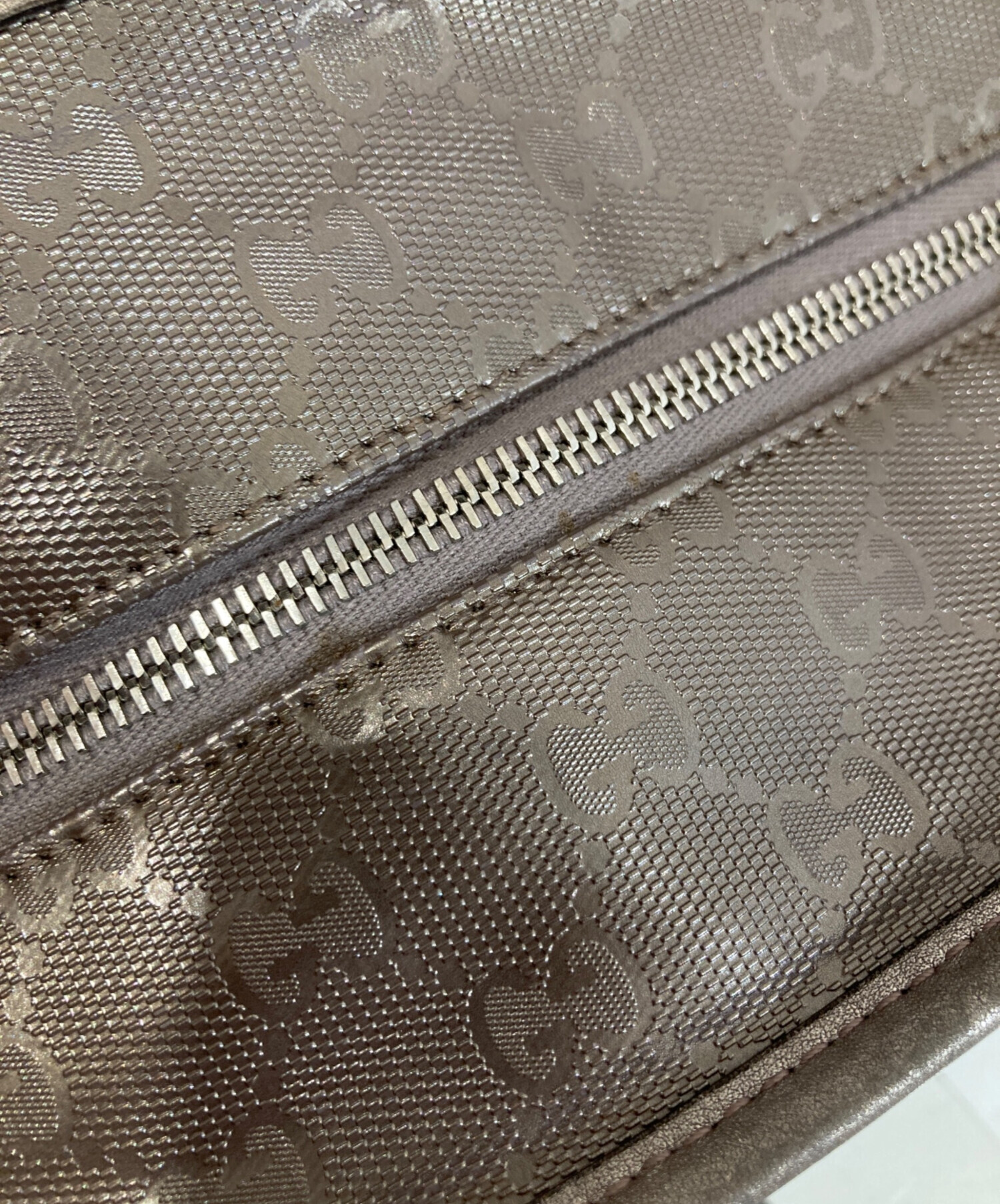 • GUCCI(グッチ)GUCCI (グッチ) GGインプリメ トートバッグ 211137 ブラウンの古着・服飾アイテム ハンドルコバ割れ