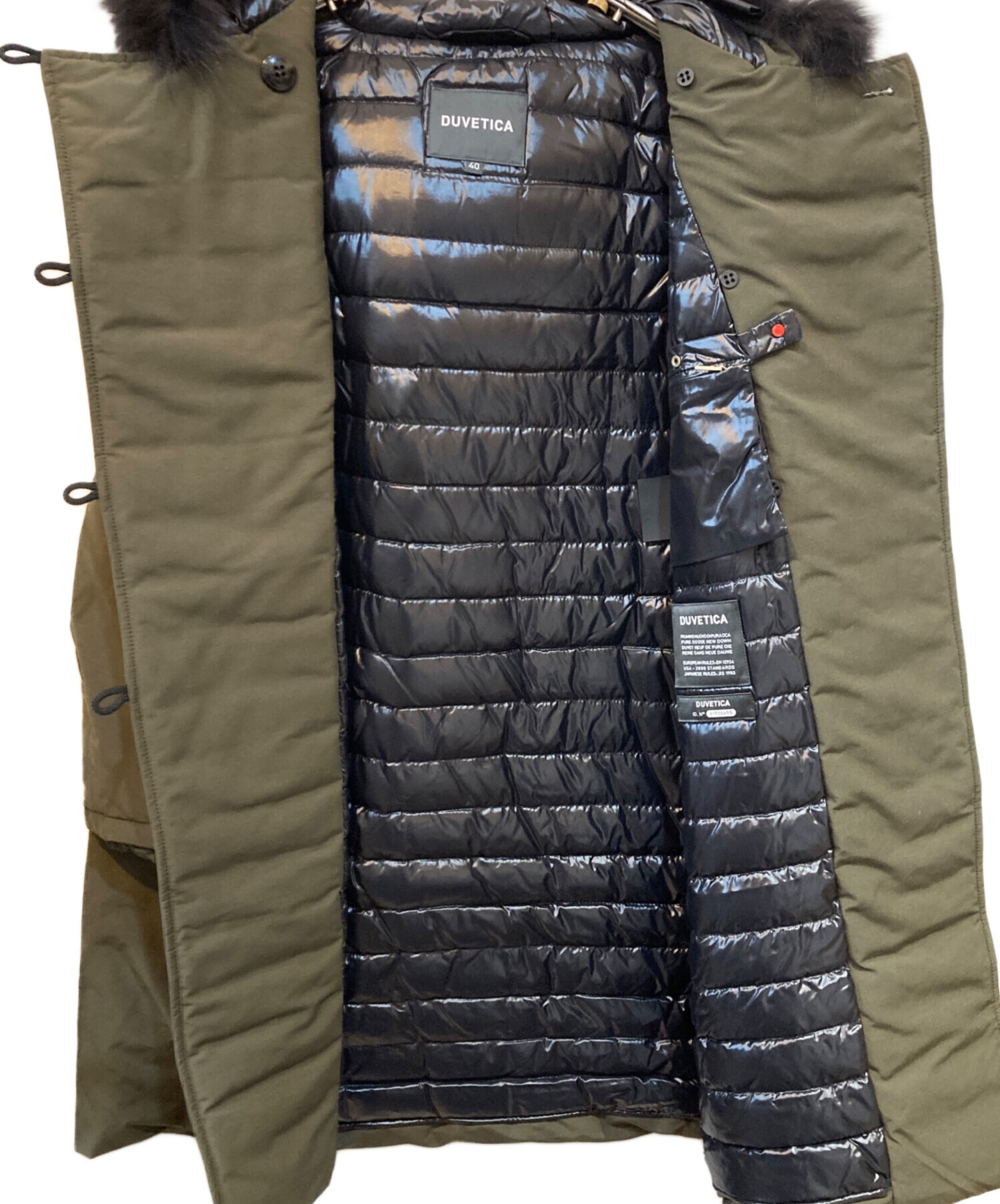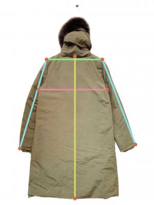| 素材 | 表地 ポリエステル 80% 綿 20% 裏地 ナイロン 100% 詰め物 ダウン 93% フェザー 7% 毛皮 フォックス |