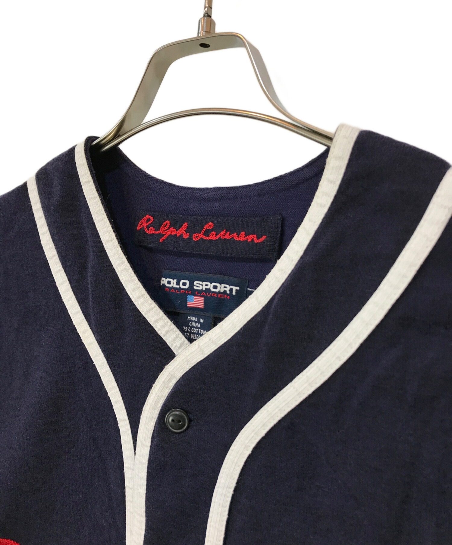 • POLO SPORT(ポロスポーツ)POLO SPORT (ポロスポーツ) ベースボールシャツ ネイビー サイズ:Lの古着・服飾アイテム 毛羽立ち