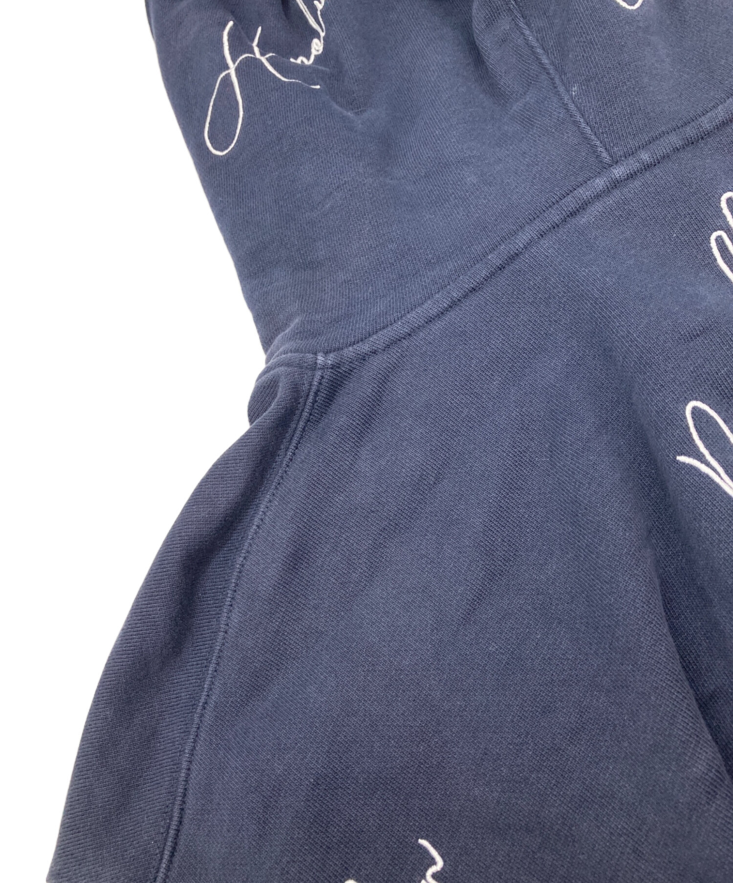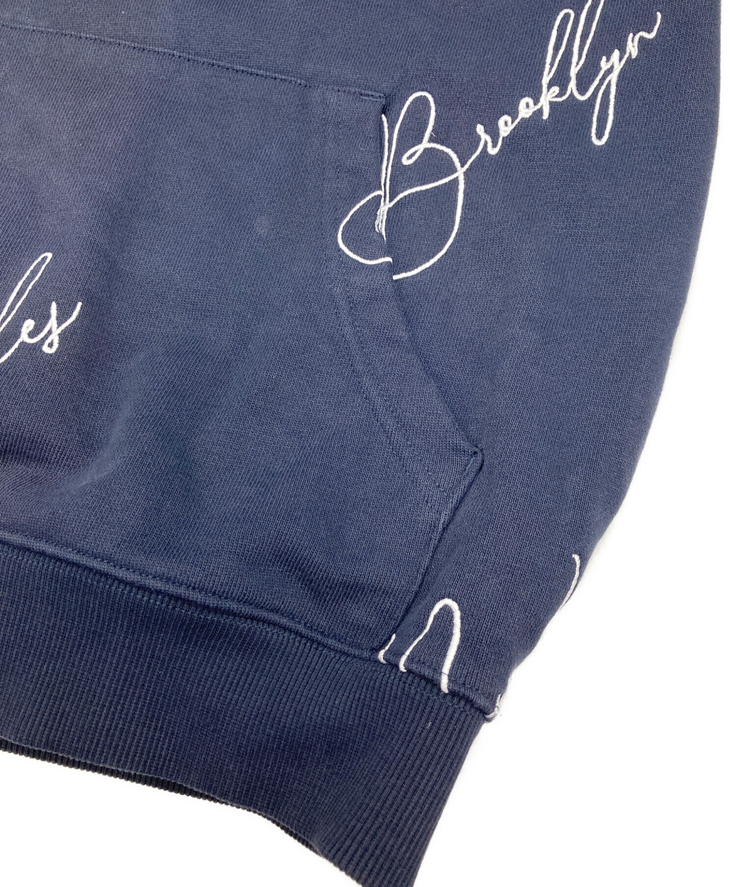 • KITH(キス)KITH (キス) City Script Hoodie ネイビー サイズ:Mの古着・服飾アイテム ポケット入口ダメージ