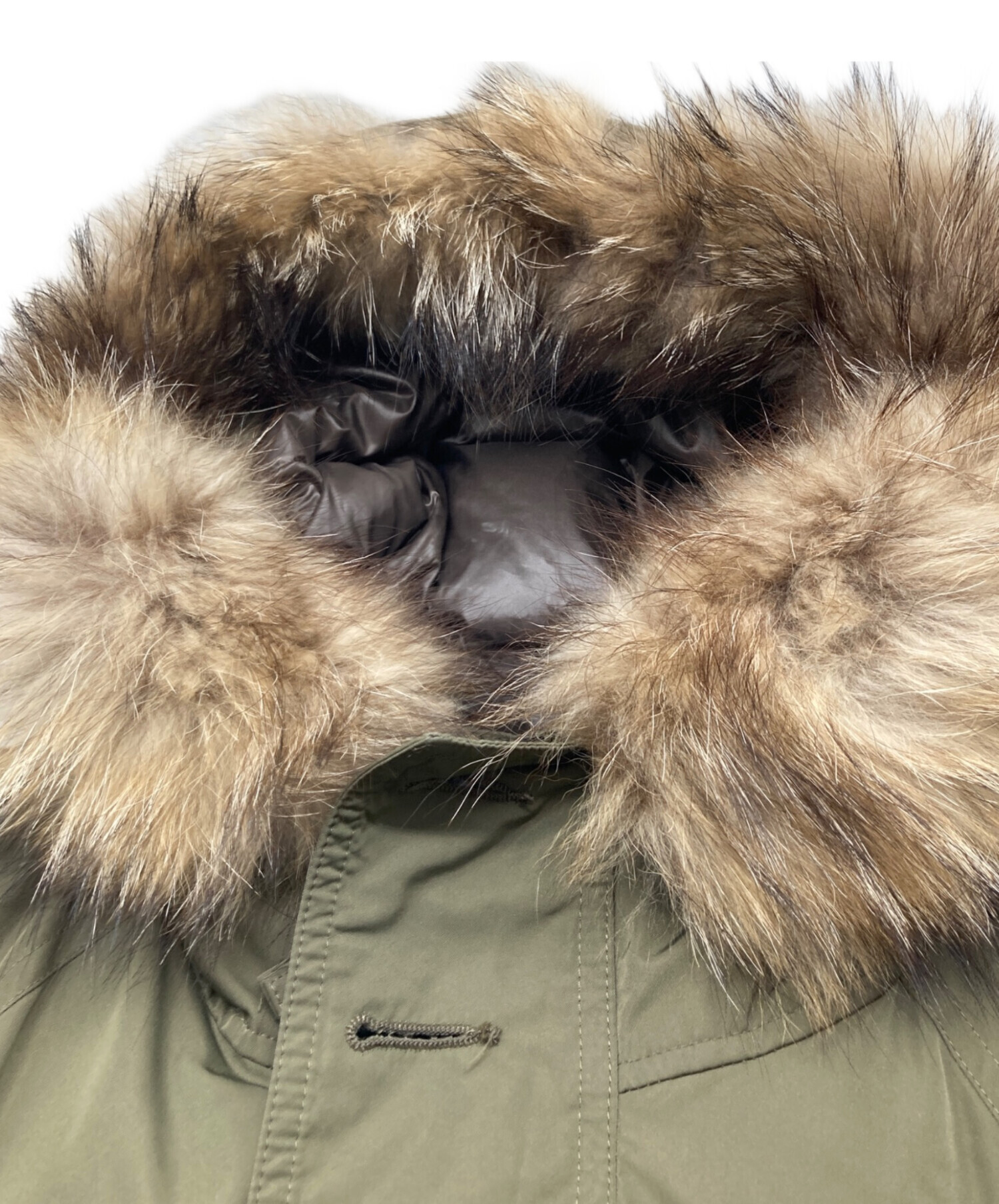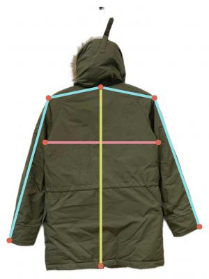 | 素材 | 表地 ポリエステル 100% 裏地 ナイロン 100% 別布 綿 100% リブ部分 アクリル 90% ポリエステル 7% ポリウレタン 3% 中わた ダウン 85% フェザー 15% ファー部分 チャイナラクーン |