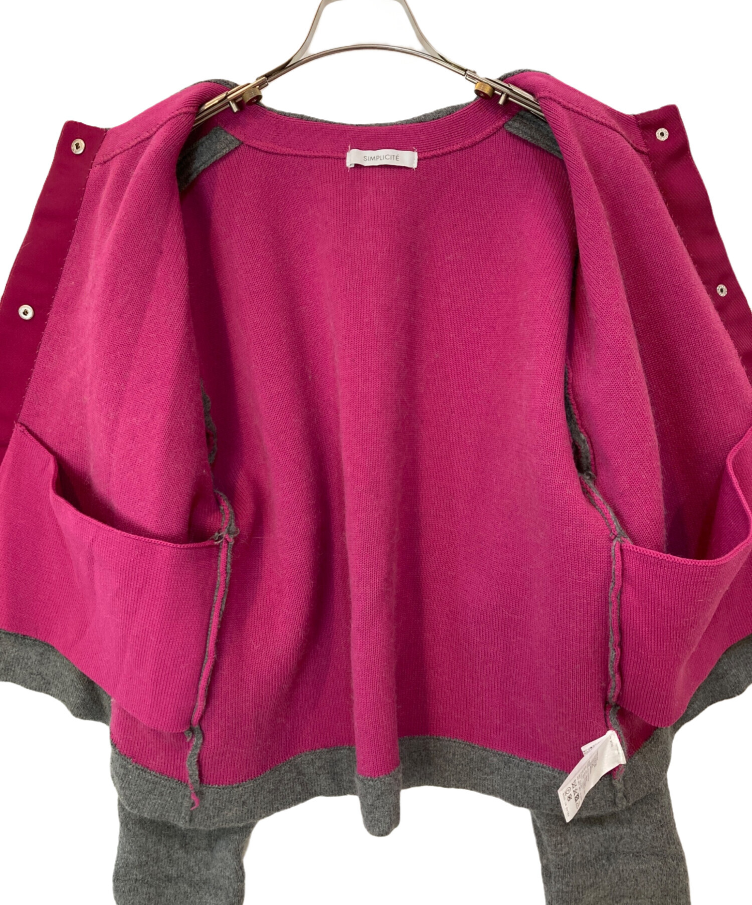 • SIMPLICITE(シンプリシテ)simplicite (シンプリシテ) 2層スムース編みニットブルゾン グレー サイズ:-の古着・服飾アイテム 袖毛羽立ち