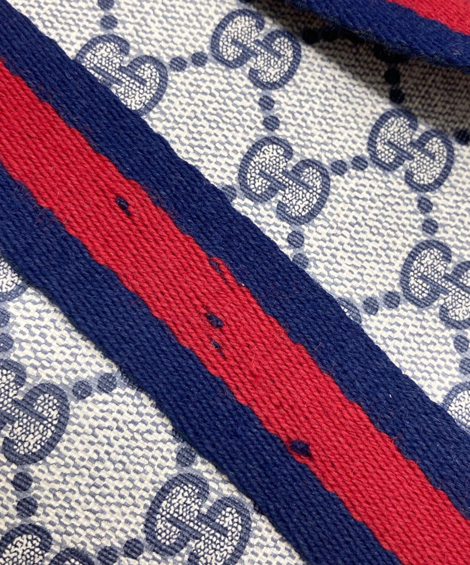 • GUCCI(グッチ)GUCCI (グッチ) シェリーライン GG柄 PVC トートバッグ ベージュ サイズ:なしの古着・服飾アイテム ショルダーホツレ有