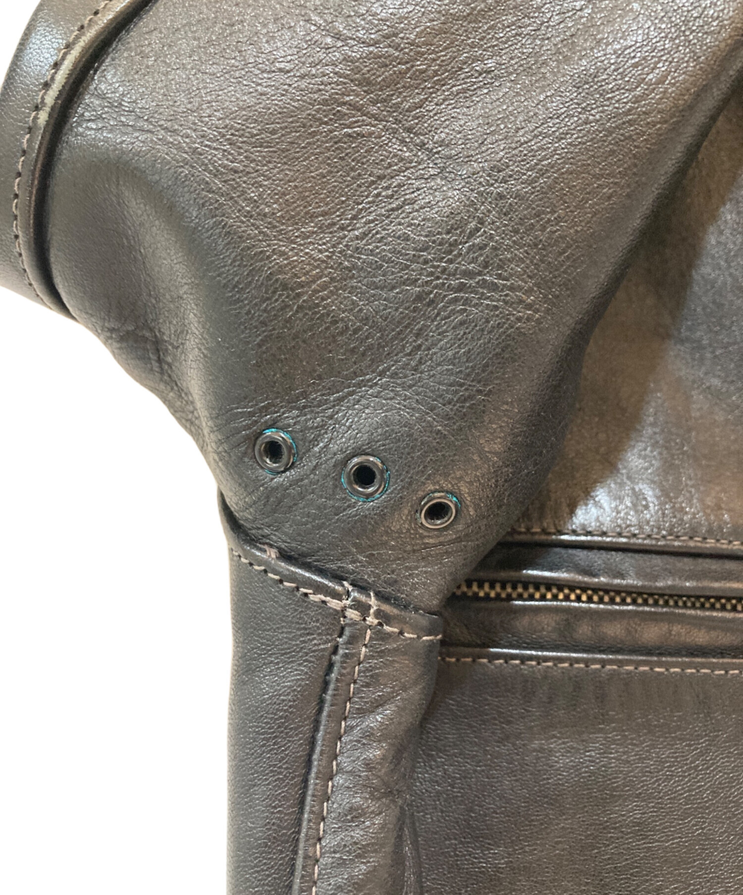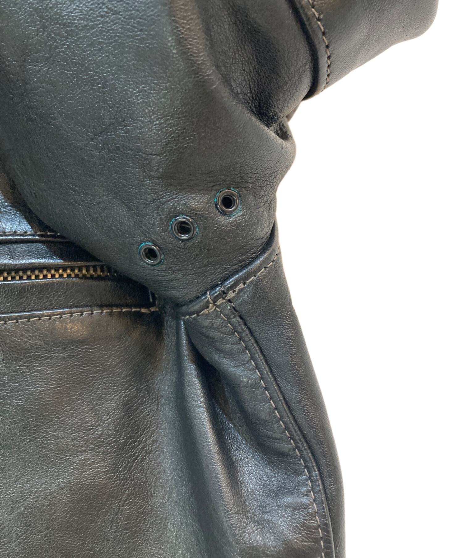 • THE REAL McCOY'S(ザ・リアルマッコイズ)THE REAL McCOY'S (ザ・リアルマッコイズ) Buco (ブコ) J-100 ホースハイド SINGLE RIDER'S JACKET ブラック サイズ:38の古着・服飾アイテム 金具 緑青有