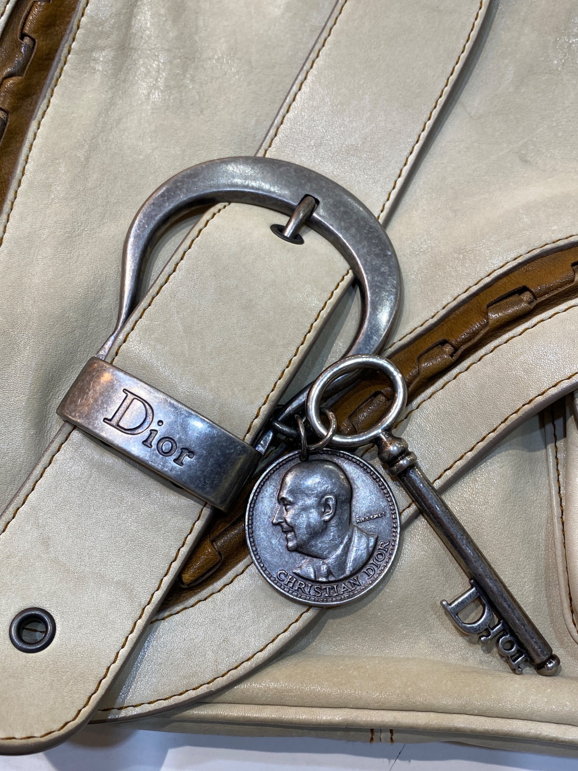 • Christian Dior(クリスチャン ディオール)Christian Dior (クリスチャン ディオール) Gaucho ガウチョ レザワンショルダーバッグ ベージュ サイズ:なしの古着・服飾アイテム 各所金具サビ・キズ・スレ