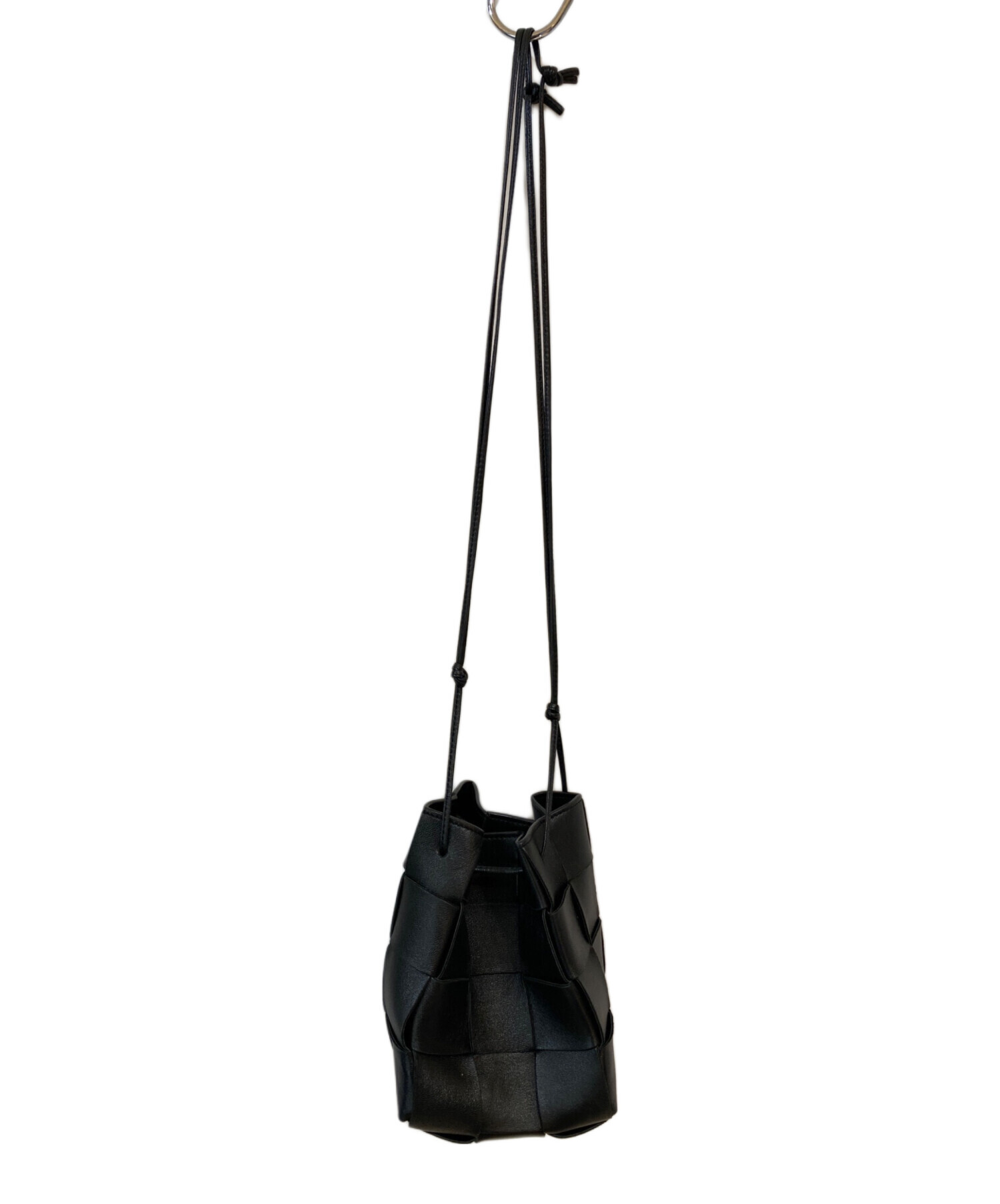 • BOTTEGA VENETA(ボッテガベネタ)BOTTEGA VENETA (ボッテガベネタ) SMALL CASSETTE スモール カセット バケットバッグ ブラックの古着・服飾アイテム ショルダー部分スレ