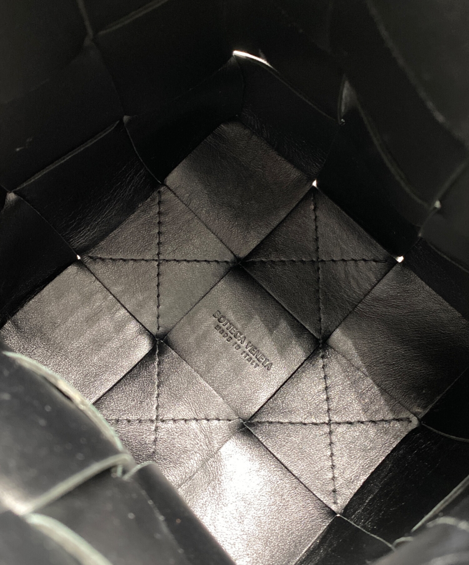 • BOTTEGA VENETA(ボッテガベネタ)BOTTEGA VENETA (ボッテガベネタ) SMALL CASSETTE スモール カセット バケットバッグ ブラックの古着・服飾アイテム 各所コバ割れ