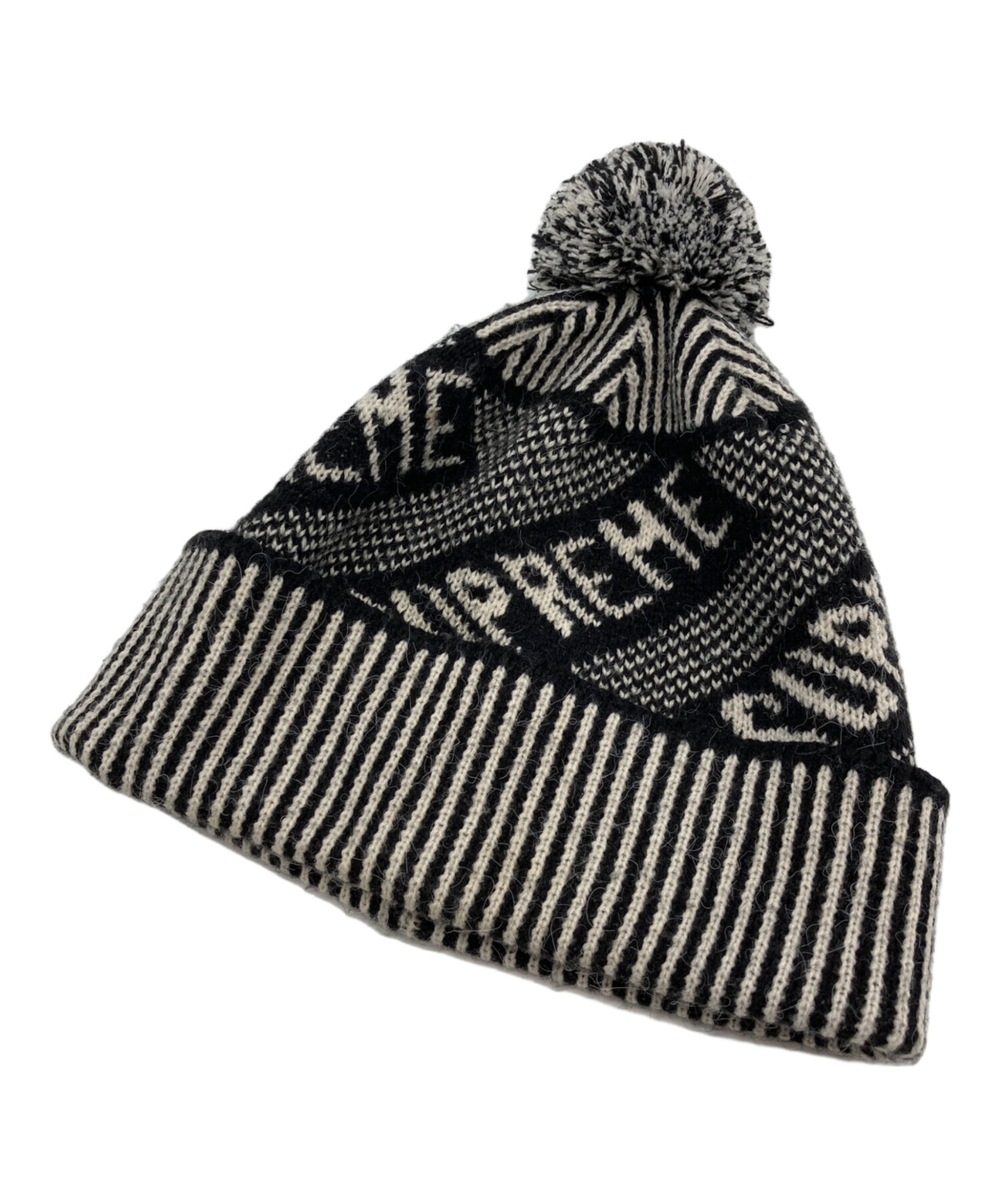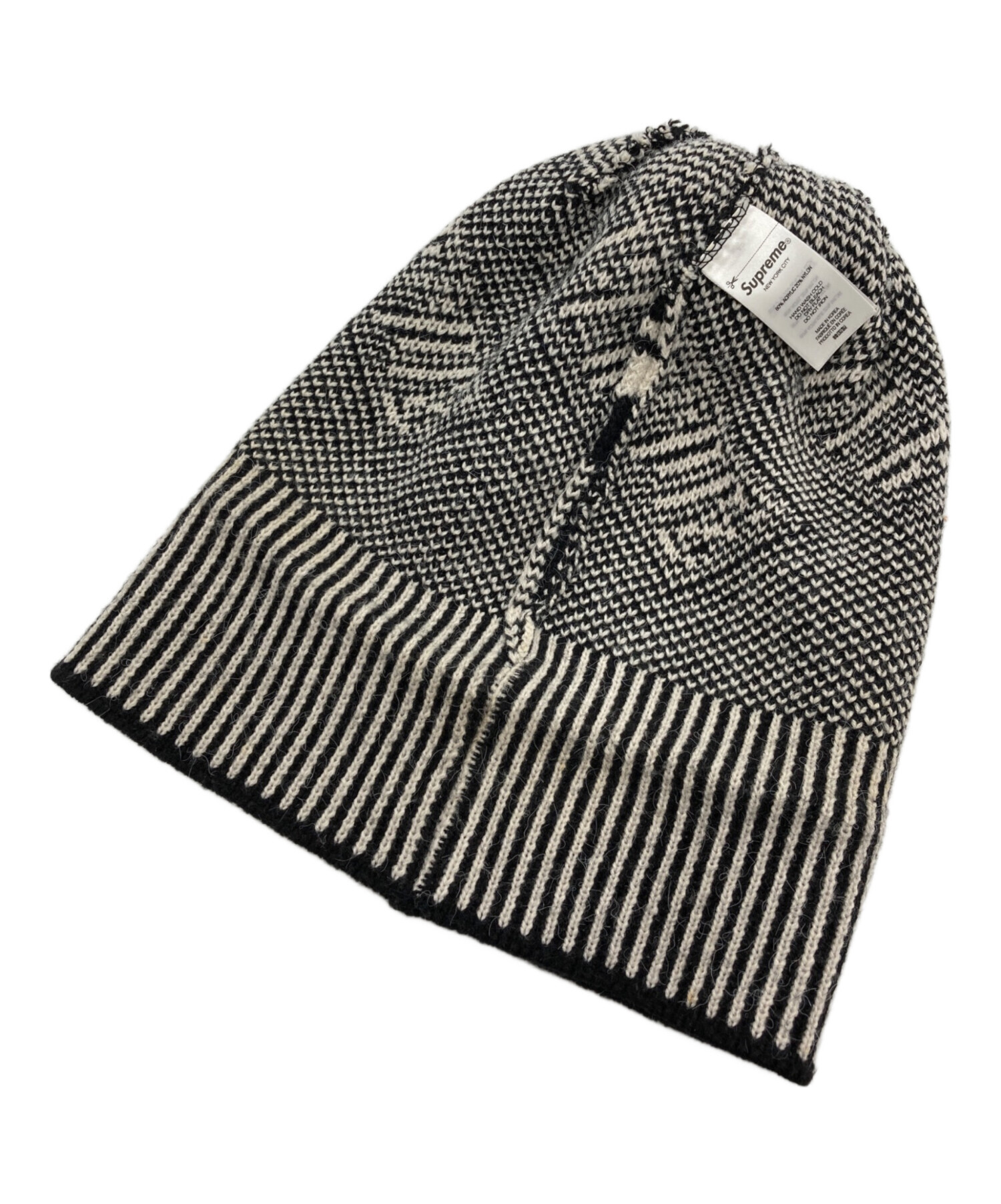 • SUPREME(シュプリーム)Supreme (シュプリーム) BANNER BEANIE ブラック×アイボリーの古着・服飾アイテム ほつれ
