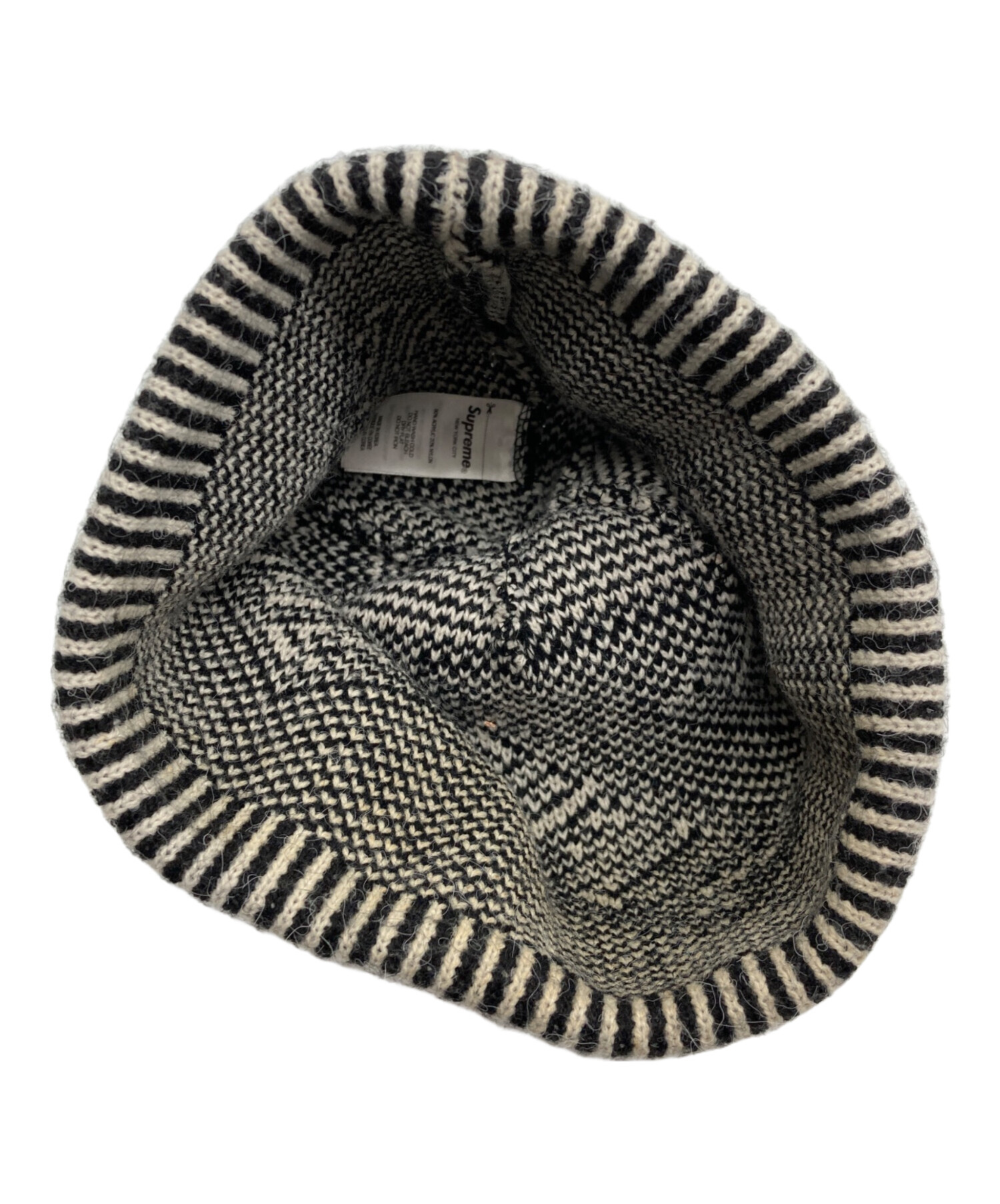 • SUPREME(シュプリーム)Supreme (シュプリーム) BANNER BEANIE ブラック×アイボリーの古着・服飾アイテム 内部黄ばみ・汚れ