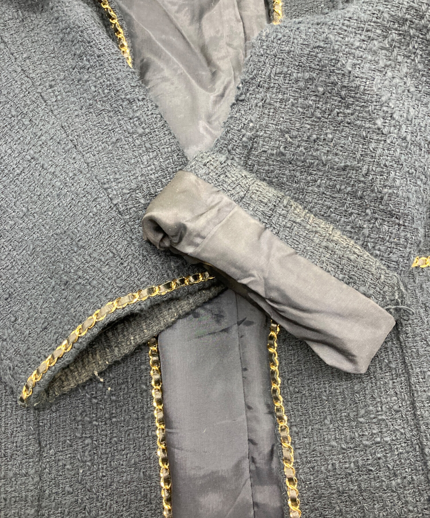 chainツイードノーカラージャケット