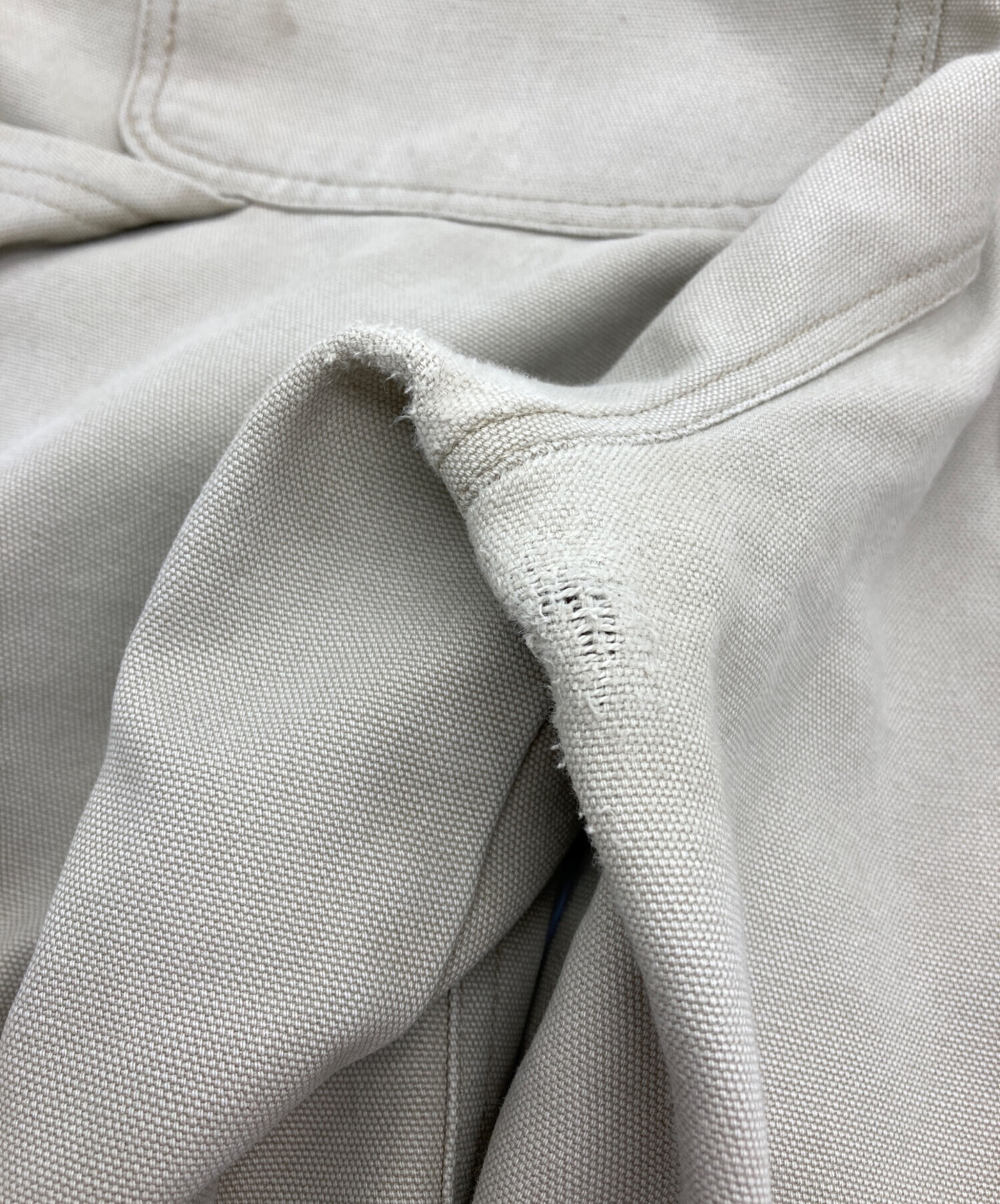 目立つシミや汚れ、におい等がある場合は商品画像や説明文にて極力表記させていただいておりますが、中古品という商品の特性上、全ての瑕疵や不備、洋服直し箇所を撮影・記載をすることは難しくなっております。また、ほとんどのアイテムは店頭と併売しておりますため、出品掲載時からコンディションが変動している場合もございます。あらかじめご了承くださいませ。