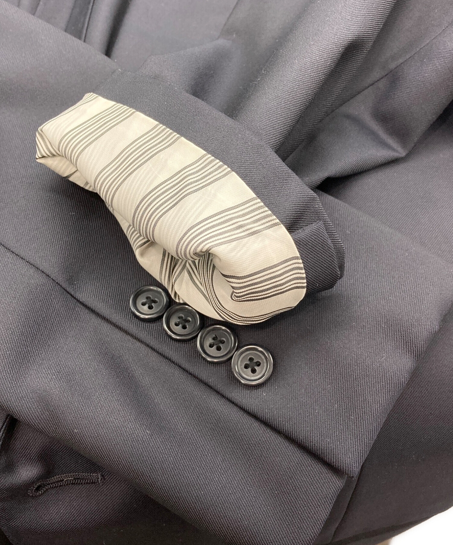 また、すべての商品に対して裾上げや洋服直しが行われているかの情報は記載しておりませんので、採寸値を参考にしてご検討ください。採寸値が弊社の基準内である場合、返品はお受けできませんので、あらかじめご了承くださいませ。