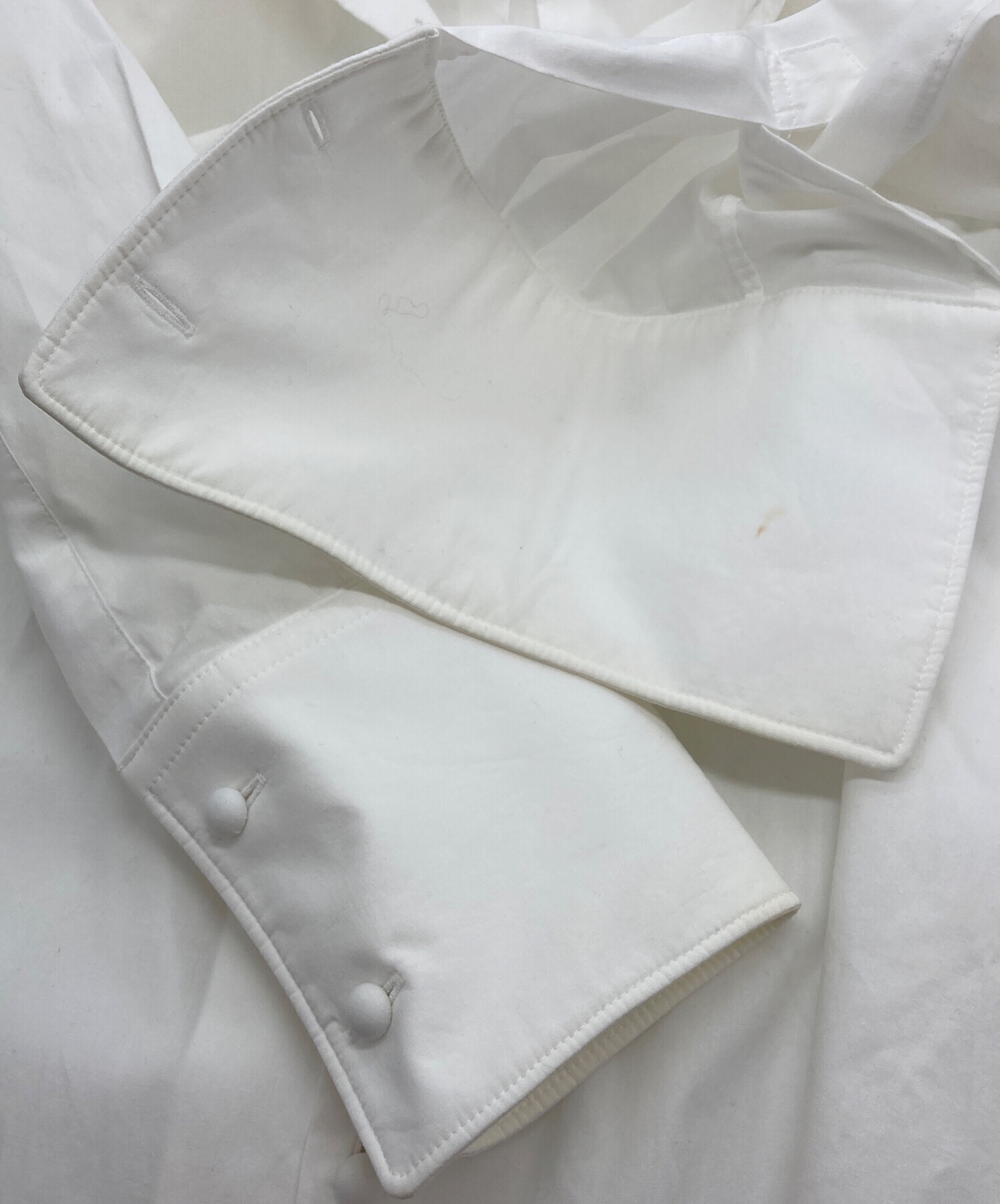 目立つシミや汚れ、におい等がある場合は商品画像や説明文にて極力表記させていただいておりますが、中古品という商品の特性上、全ての瑕疵や不備、洋服直し箇所を撮影・記載をすることは難しくなっております。また、ほとんどのアイテムは店頭と併売しておりますため、出品掲載時からコンディションが変動している場合もございます。あらかじめご了承くださいませ。