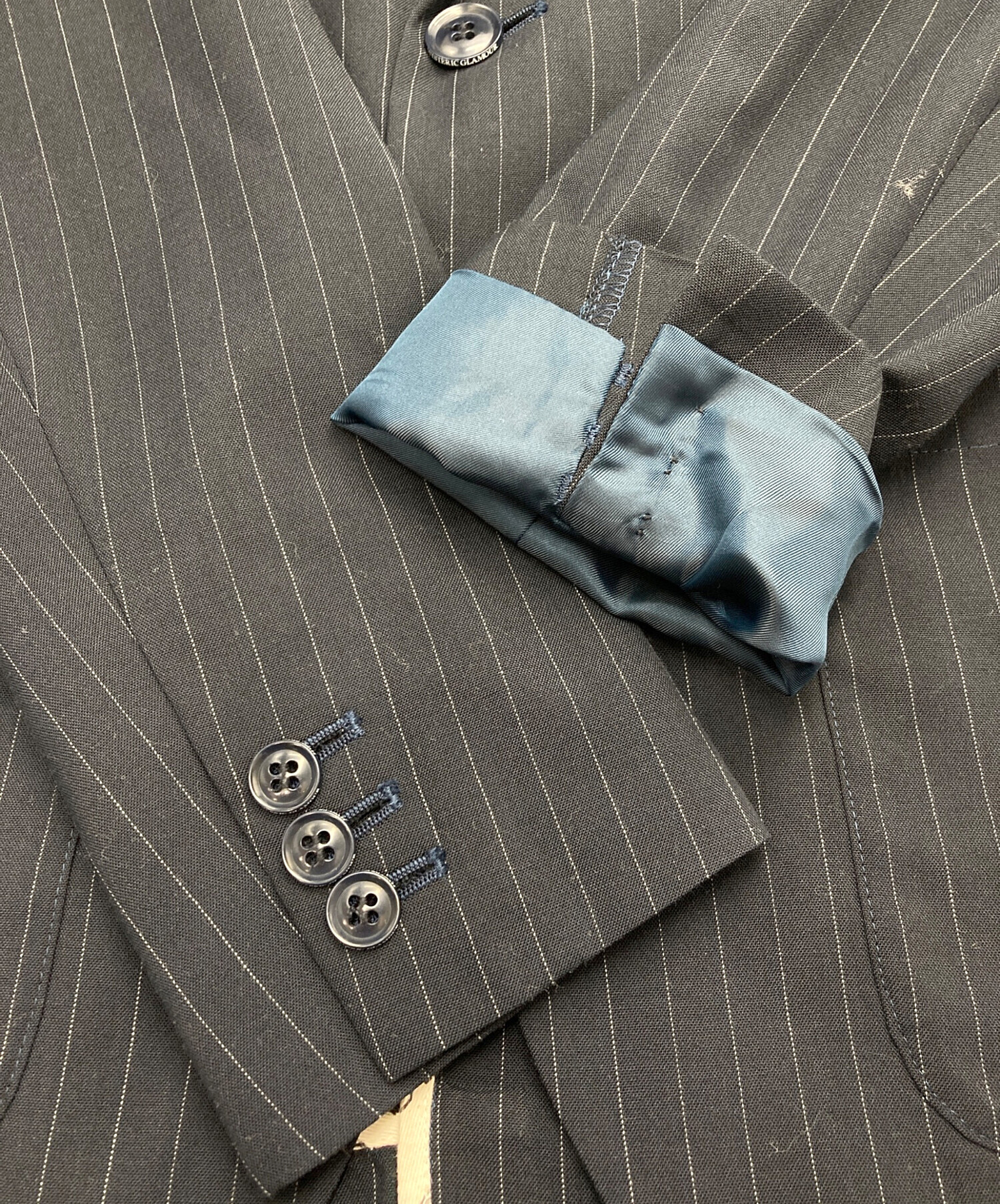 • Hysteric Glamour(ヒステリックグラマー)Hysteric Glamour (ヒステリックグラマー) ストライプテーラードジャケット ネイビー サイズ:Sの古着・服飾アイテム シミ・汚れ