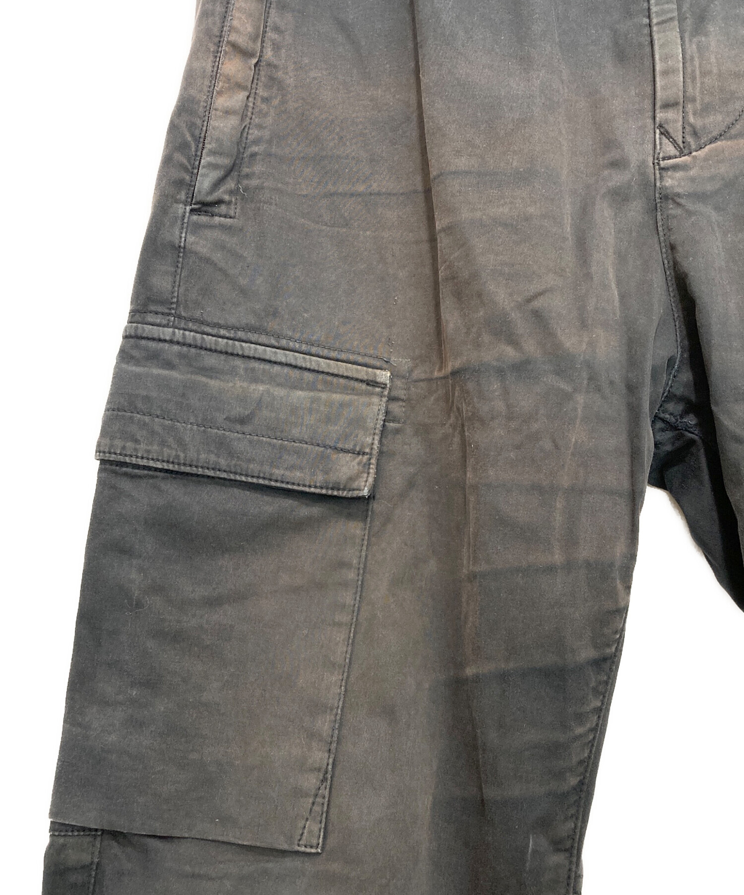 ガーメントダイコットンウールストレッチサテンシャーリングテーパードリブカーゴパンツ