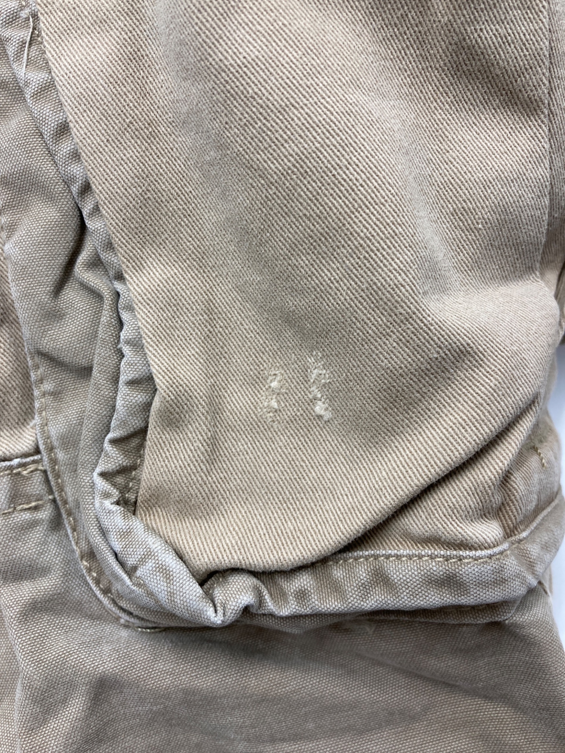 目立つシミや汚れ、におい等がある場合は商品画像や説明文にて極力表記させていただいておりますが、中古品という商品の特性上、全ての瑕疵や不備、洋服直し箇所を撮影・記載をすることは難しくなっております。また、ほとんどのアイテムは店頭と併売しておりますため、出品掲載時からコンディションが変動している場合もございます。あらかじめご了承くださいませ。