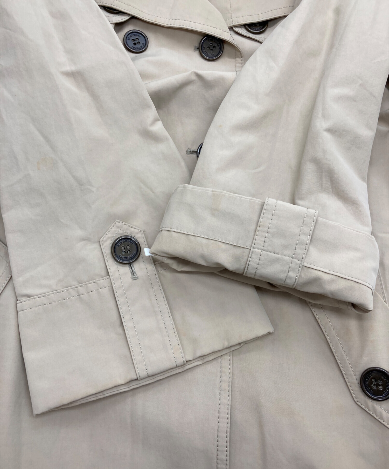 目立つシミや汚れ、におい等がある場合は商品画像や説明文にて極力表記させていただいておりますが、中古品という商品の特性上、全ての瑕疵や不備、洋服直し箇所を撮影・記載をすることは難しくなっております。また、ほとんどのアイテムは店頭と併売しておりますため、出品掲載時からコンディションが変動している場合もございます。あらかじめご了承くださいませ。