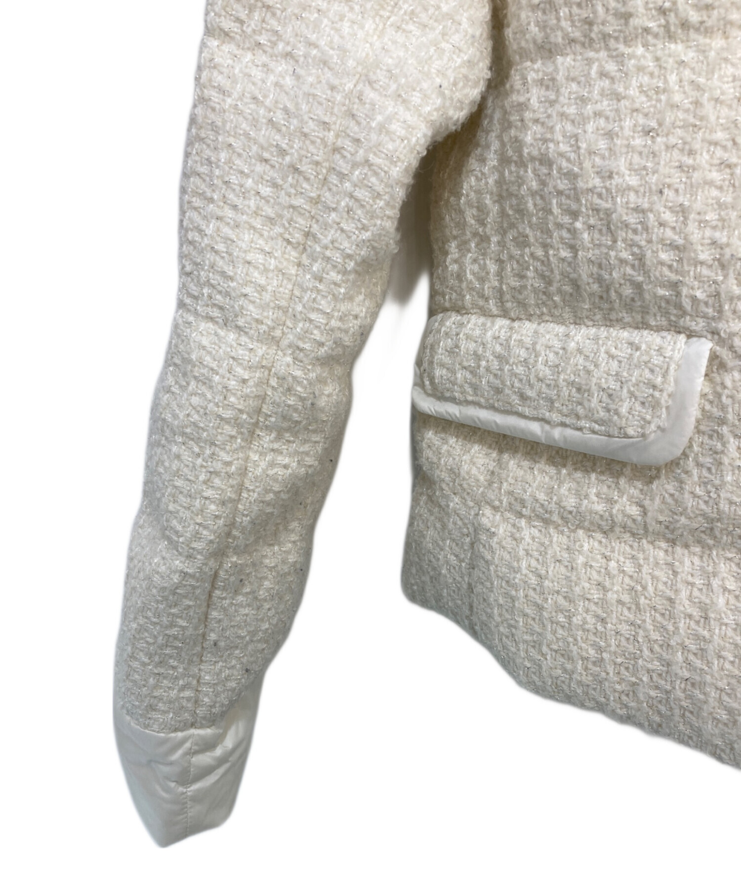 ノーカラーツイードダウンジャケット