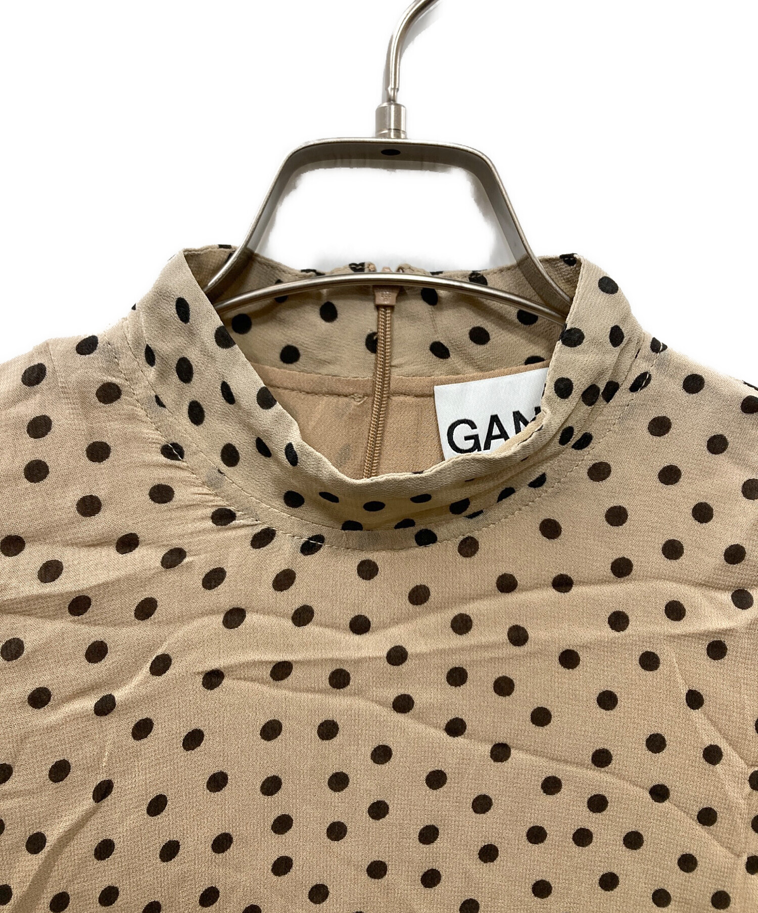 • GANNI(ガニー)GANNI (ガニー) ドットワンピース ベージュ×ブラック サイズ:不明(表記無)の古着・服飾アイテム 全体シワ有