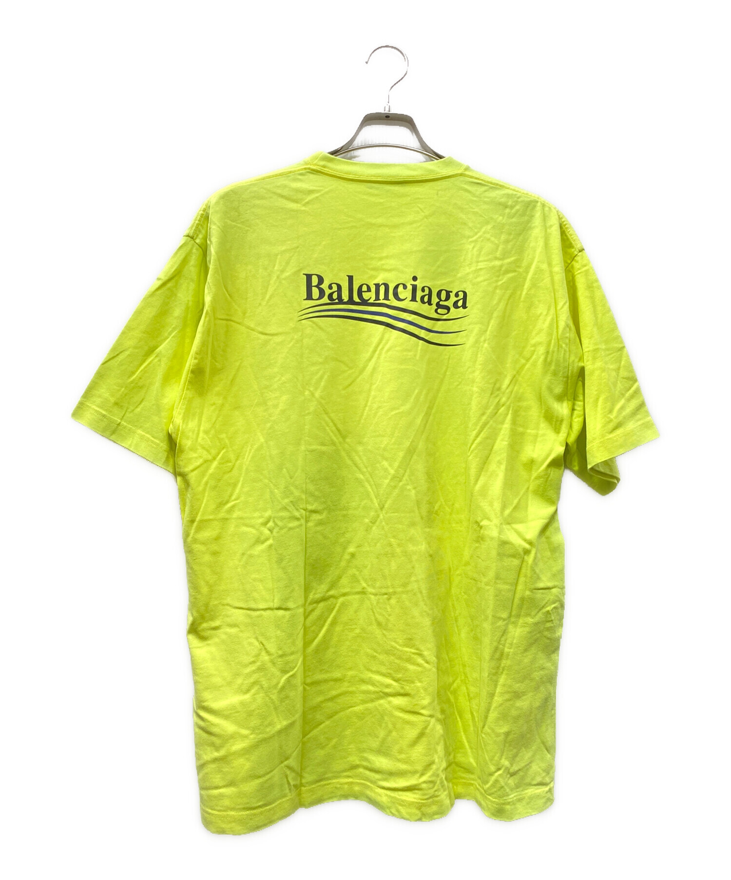 • BALENCIAGA(バレンシアガ)BALENCIAGA (バレンシアガ) CAMPAIGN LOGO OVERSIZE TEE ロゴTシャツ イエロー サイズ:Sの古着・服飾アイテム 背面襟ヨゴレ有