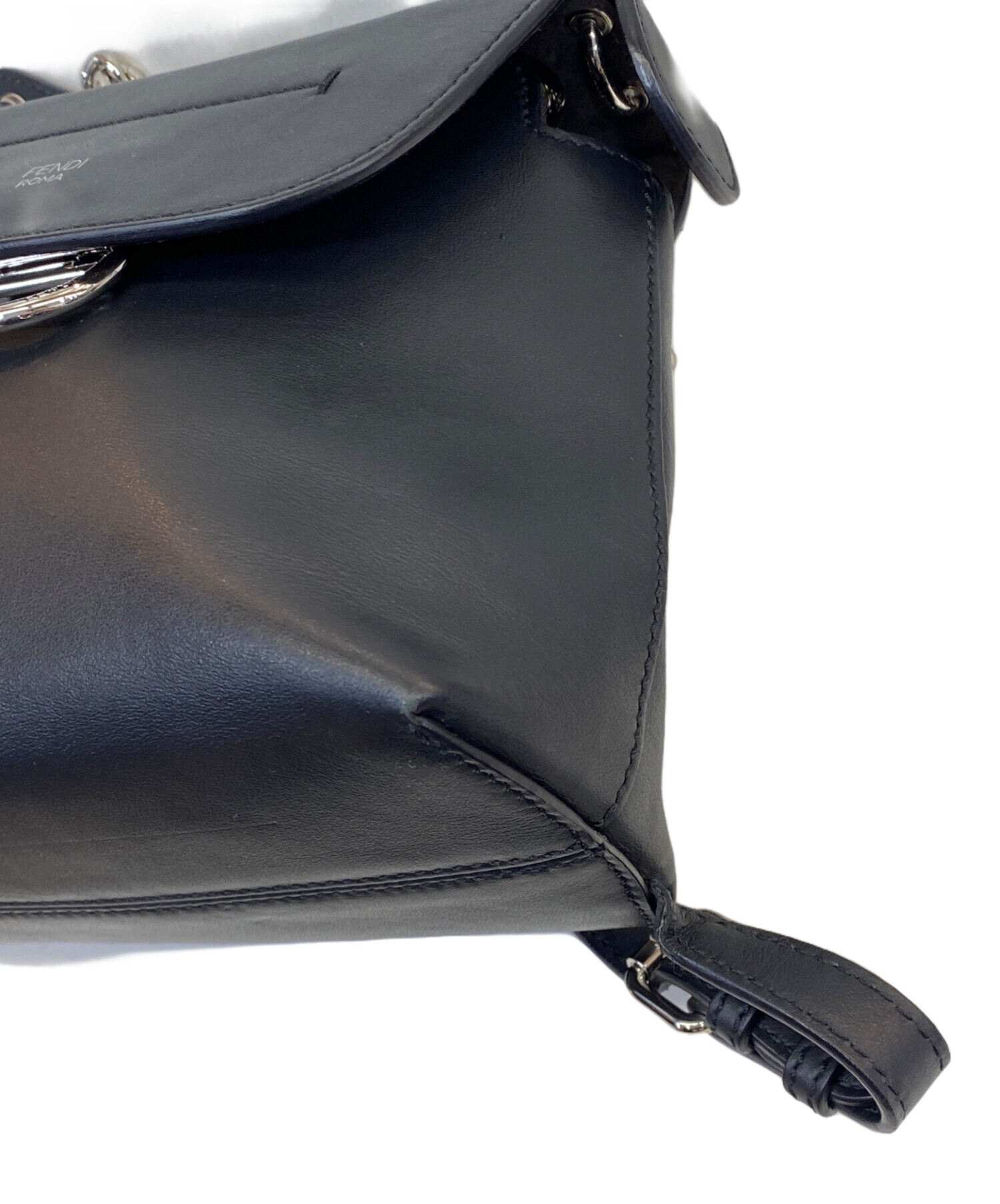 • FENDI(フェンディ)FENDI (フェンディ) バックトゥスクール レザーバックパック ブラック サイズ:OneSizeの古着・服飾アイテム フラップ裏面キズ