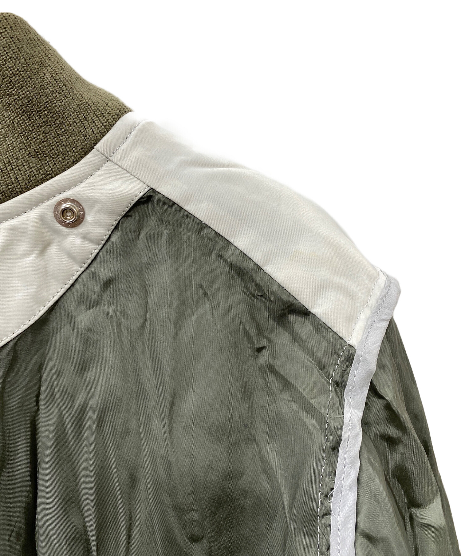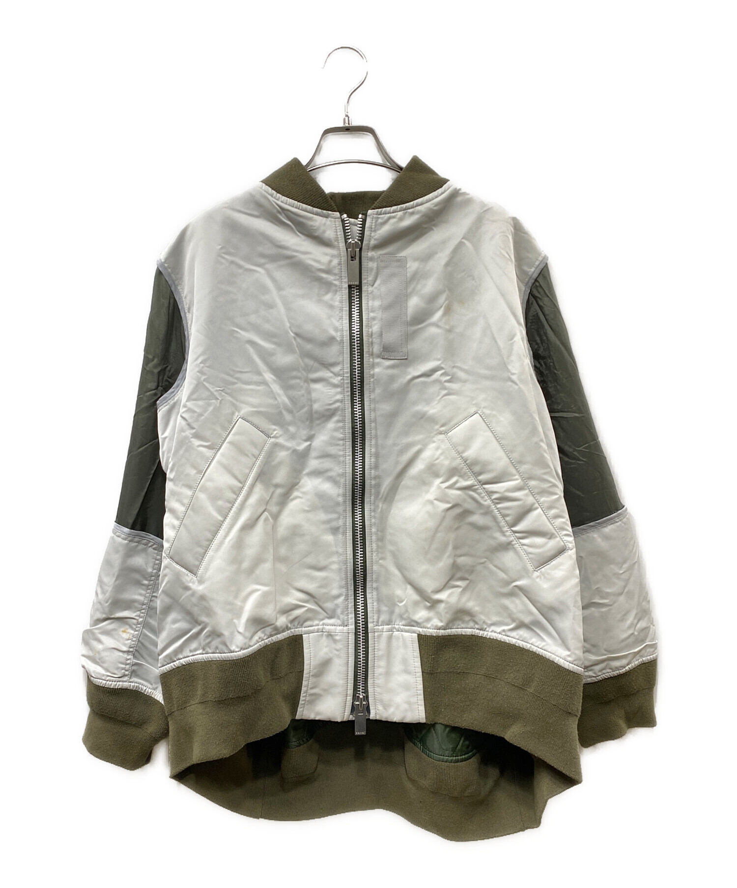 • sacai(サカイ)sacai (サカイ) 切替MA-1ジャケット オリーブ×ホワイト サイズ:SIZE 1の古着・服飾アイテム シミヨゴレ有