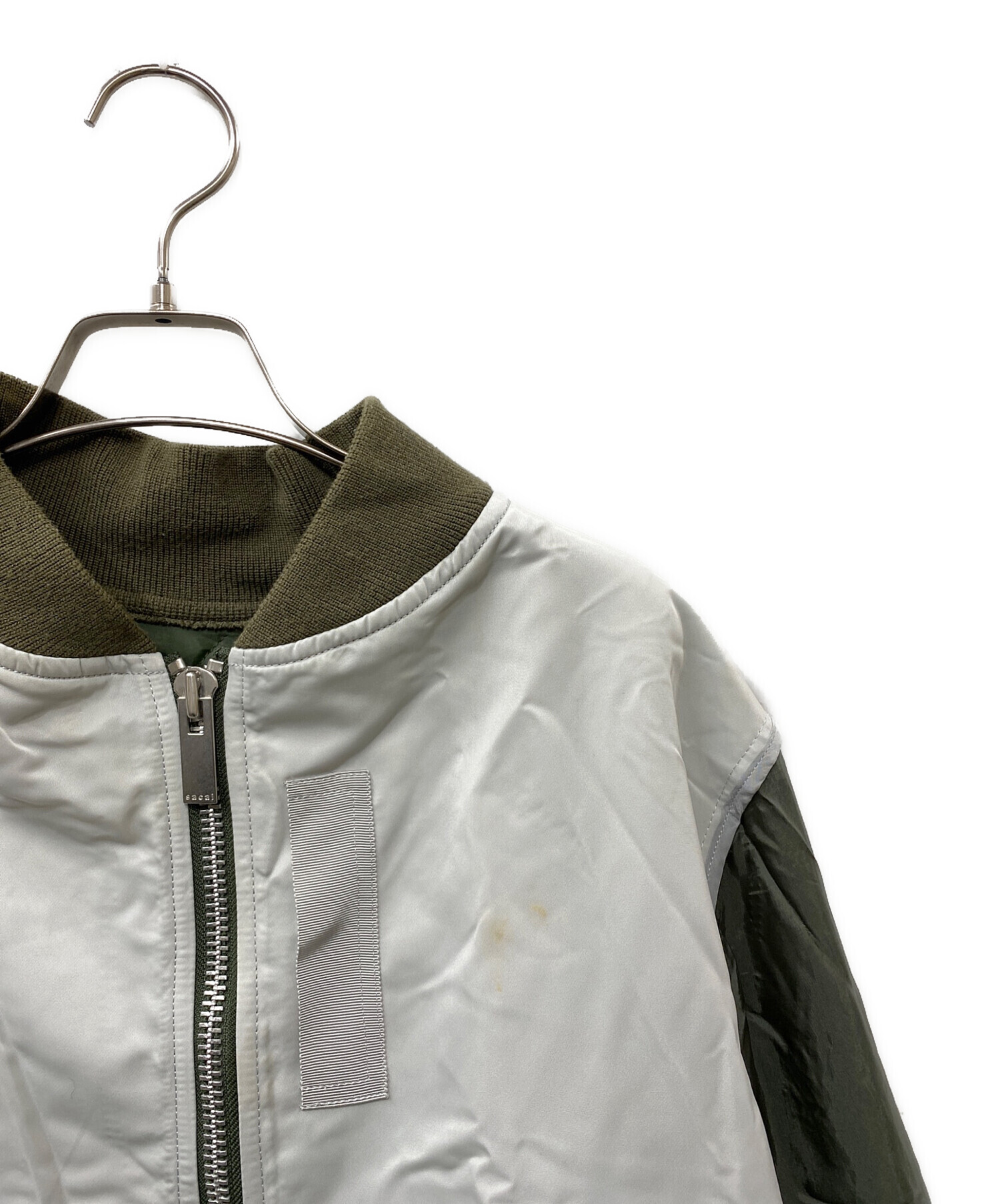 • sacai(サカイ)sacai (サカイ) 切替MA-1ジャケット オリーブ×ホワイト サイズ:SIZE 1の古着・服飾アイテム 各所シミヨゴレ有 ※レイヤード品欠品