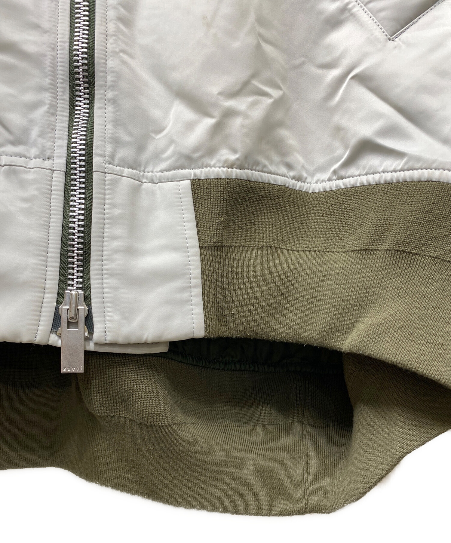 • sacai(サカイ)sacai (サカイ) 切替MA-1ジャケット オリーブ×ホワイト サイズ:SIZE 1の古着・服飾アイテム 毛玉・シミヨゴレ有