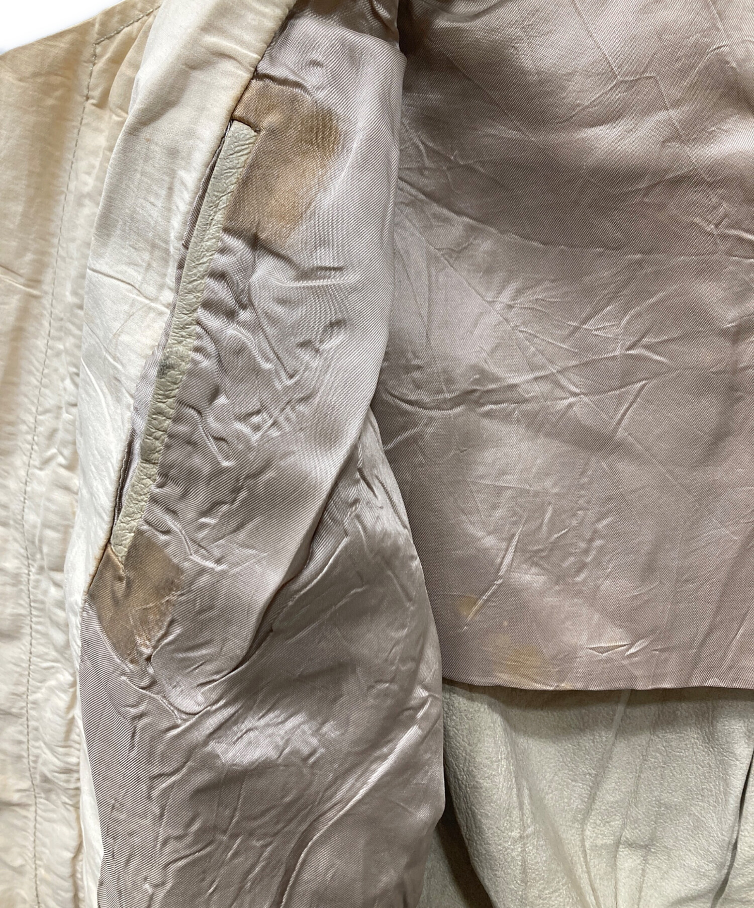 目立つシミや汚れ、におい等がある場合は商品画像や説明文にて極力表記させていただいておりますが、中古品という商品の特性上、全ての瑕疵や不備、洋服直し箇所を撮影・記載をすることは難しくなっております。また、ほとんどのアイテムは店頭と併売しておりますため、出品掲載時からコンディションが変動している場合もございます。あらかじめご了承くださいませ。