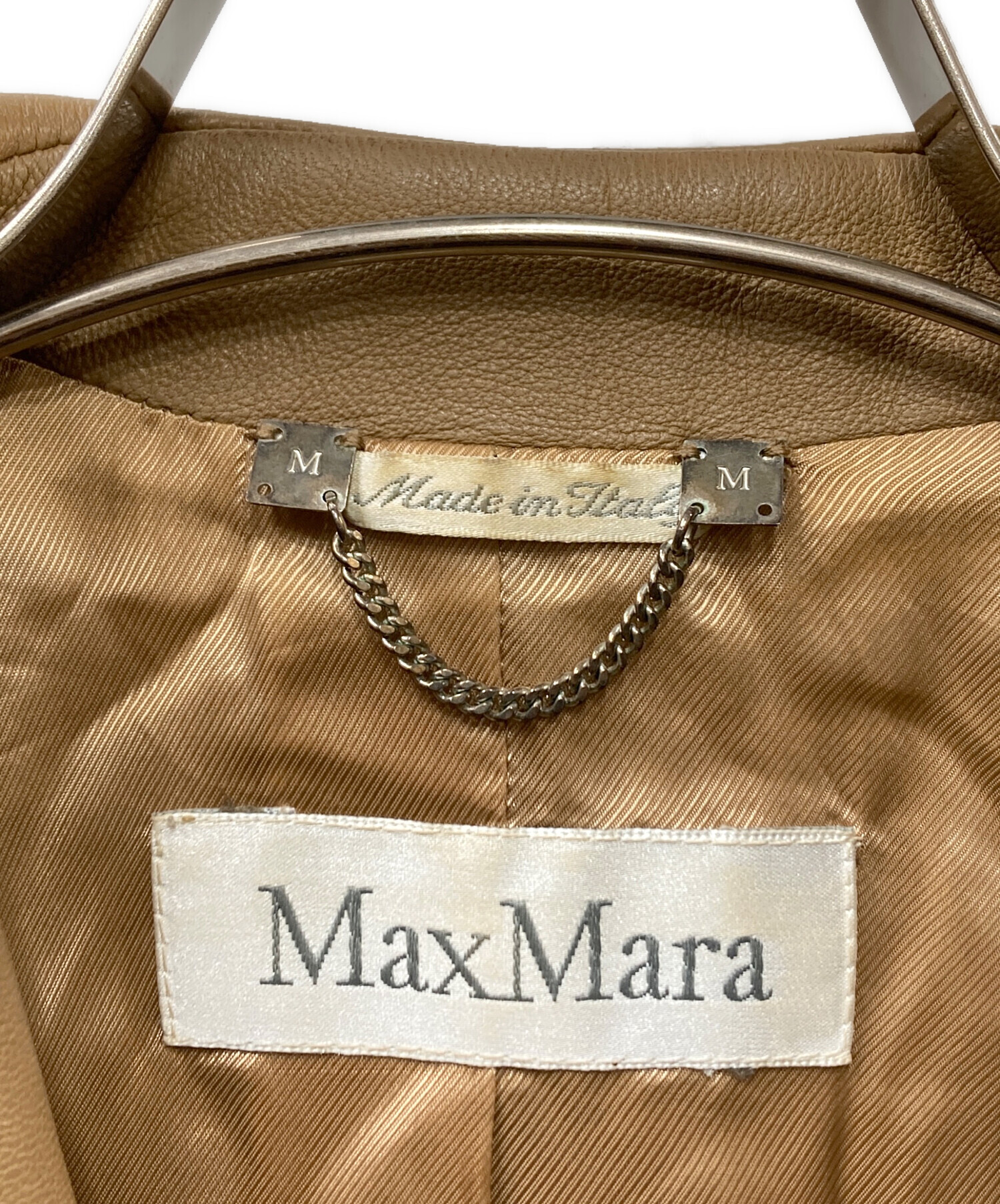 • MaxMara(マックスマーラ)MaxMara (マックスマーラ) レザーテーラードジャケット ブラウン サイズ:SIZE 38の古着・服飾アイテム 袖裏スレ跡・小ヨゴレ有