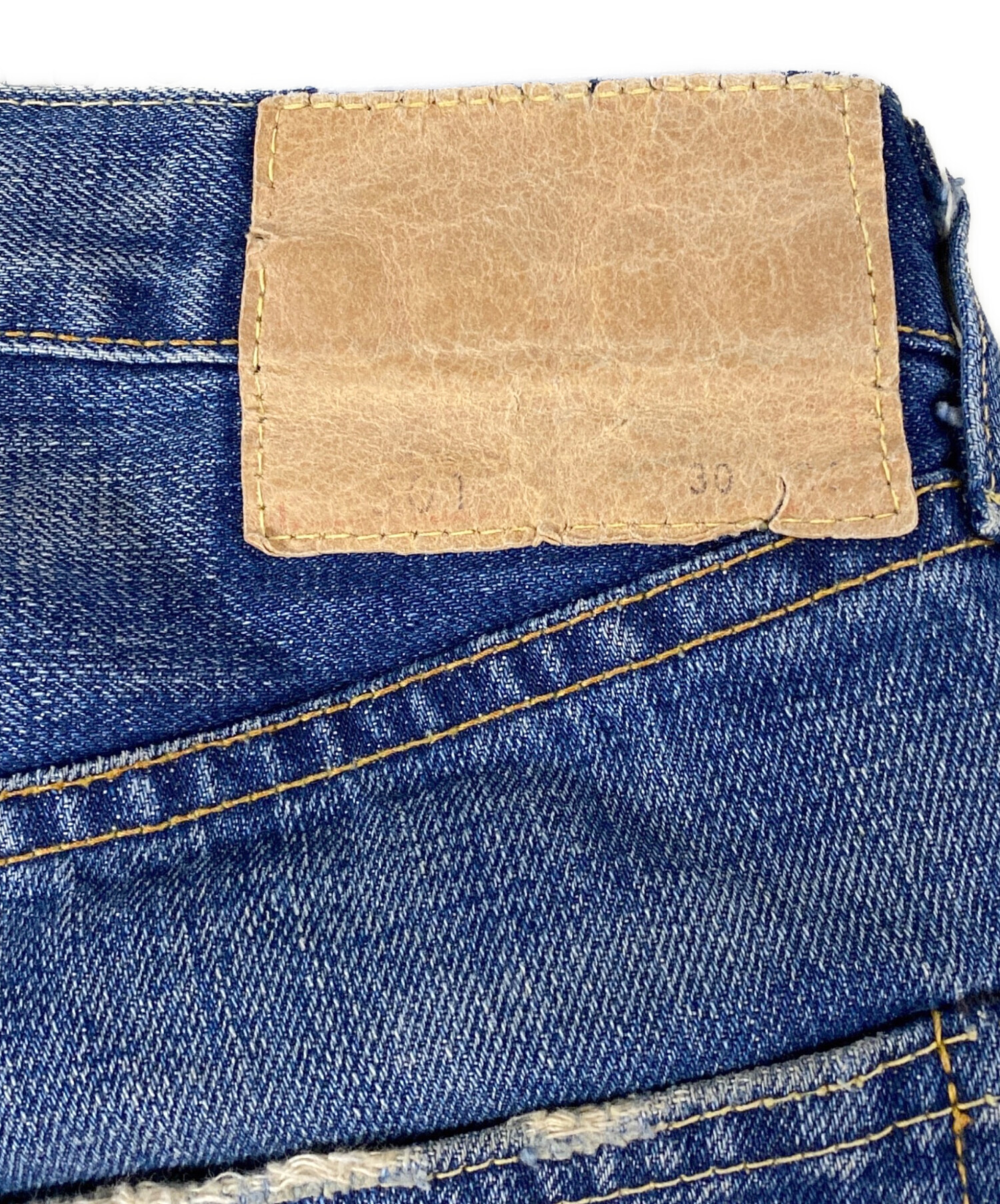 • LEVI'S(リーバイス)LEVI'S (リーバイス) 66前期復刻モデル 66501 デニムパンツ インディゴ サイズ:SIZE 76cm(W30)の古着・服飾アイテム パッチ部分 小ダメージ有