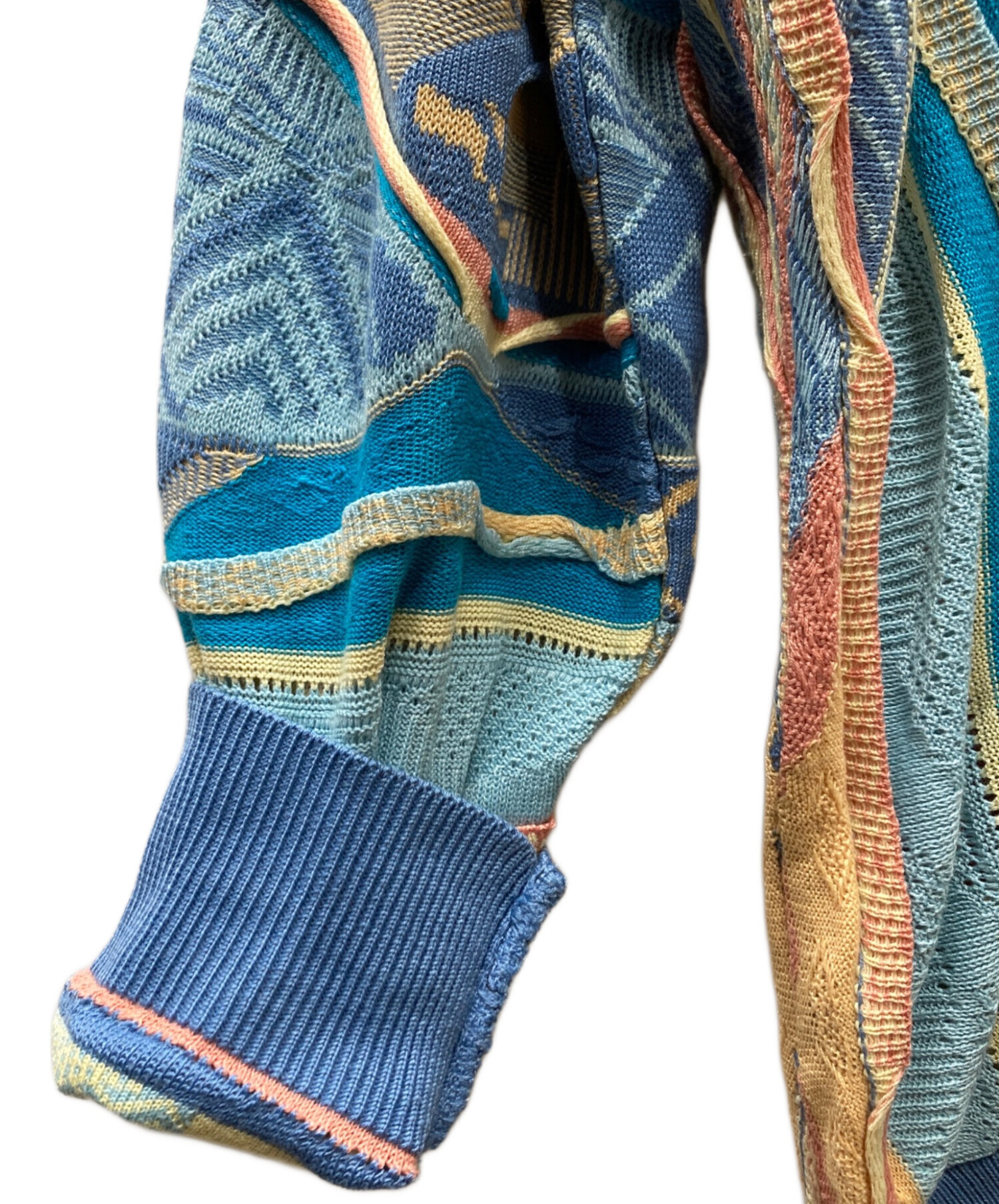 • missoni sports(ミッソーニスポーツ)missoni sports (ミッソーニスポーツ) 3Dニット ブルー×ベージュ サイズ:不明(表記無)の古着・服飾アイテム ホツレ有