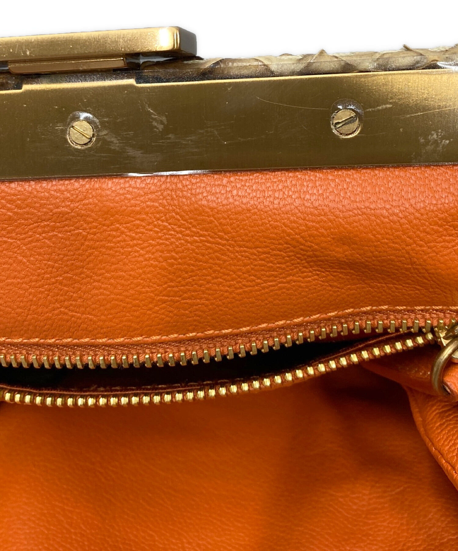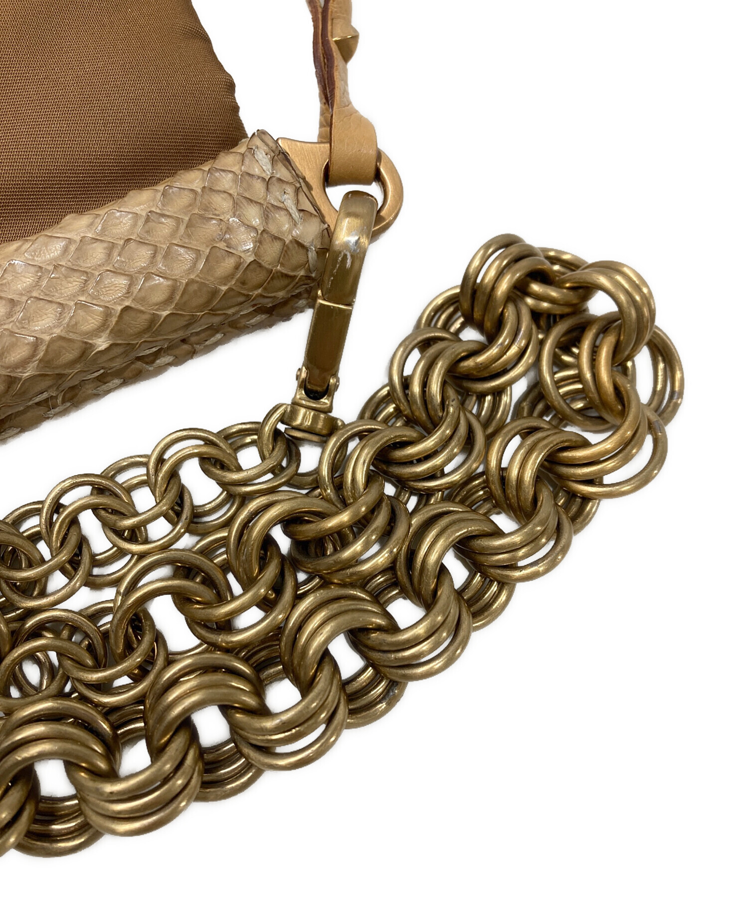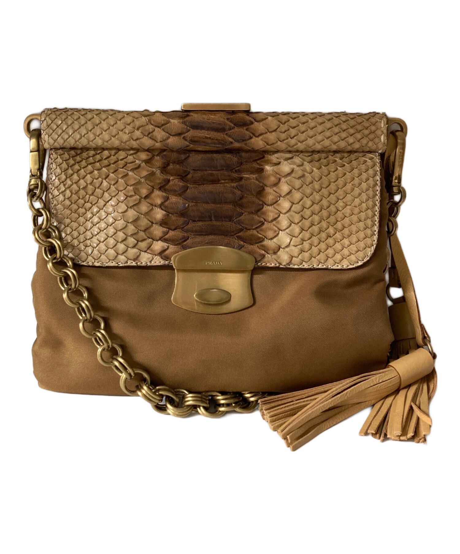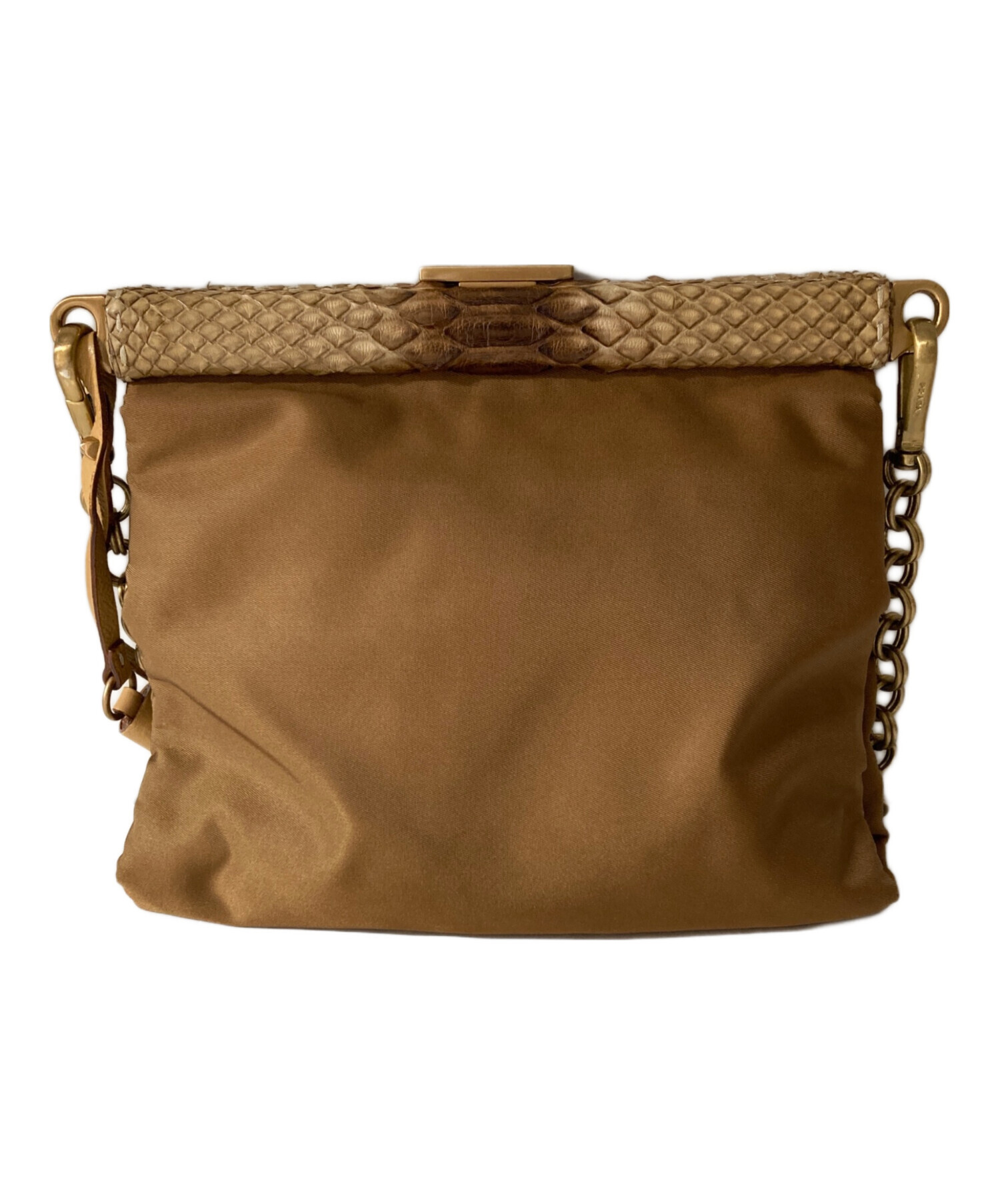 • PRADA(プラダ)PRADA (プラダ) ナイロン×蛇革 チェーン ワンショルダーバッグ ブラウンの古着・服飾アイテム ポケット内小毛羽立ち有