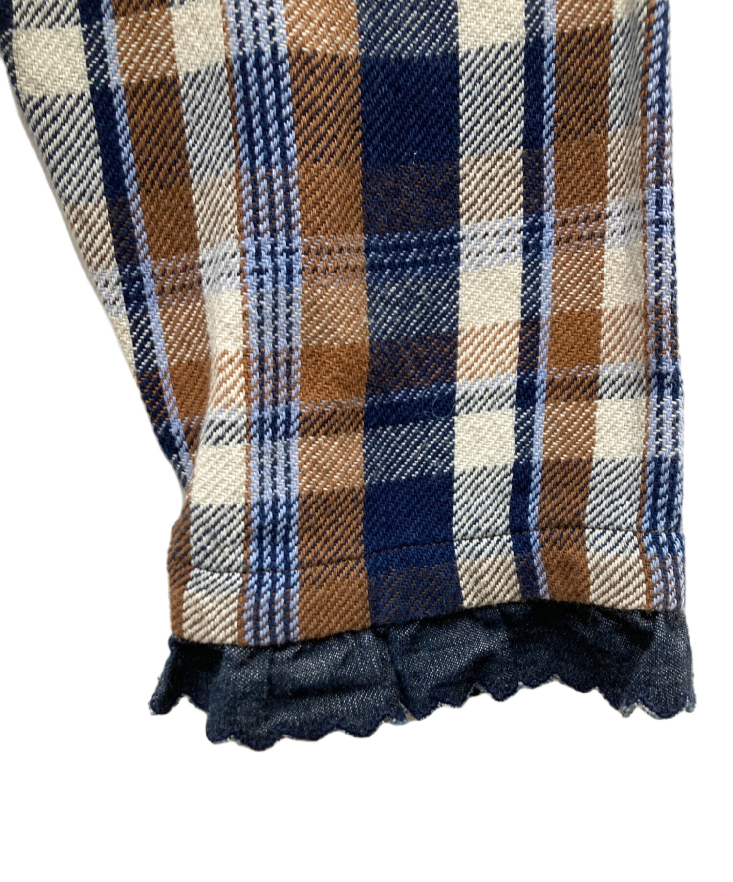 藍ざっくりネルのフリルTシャツ