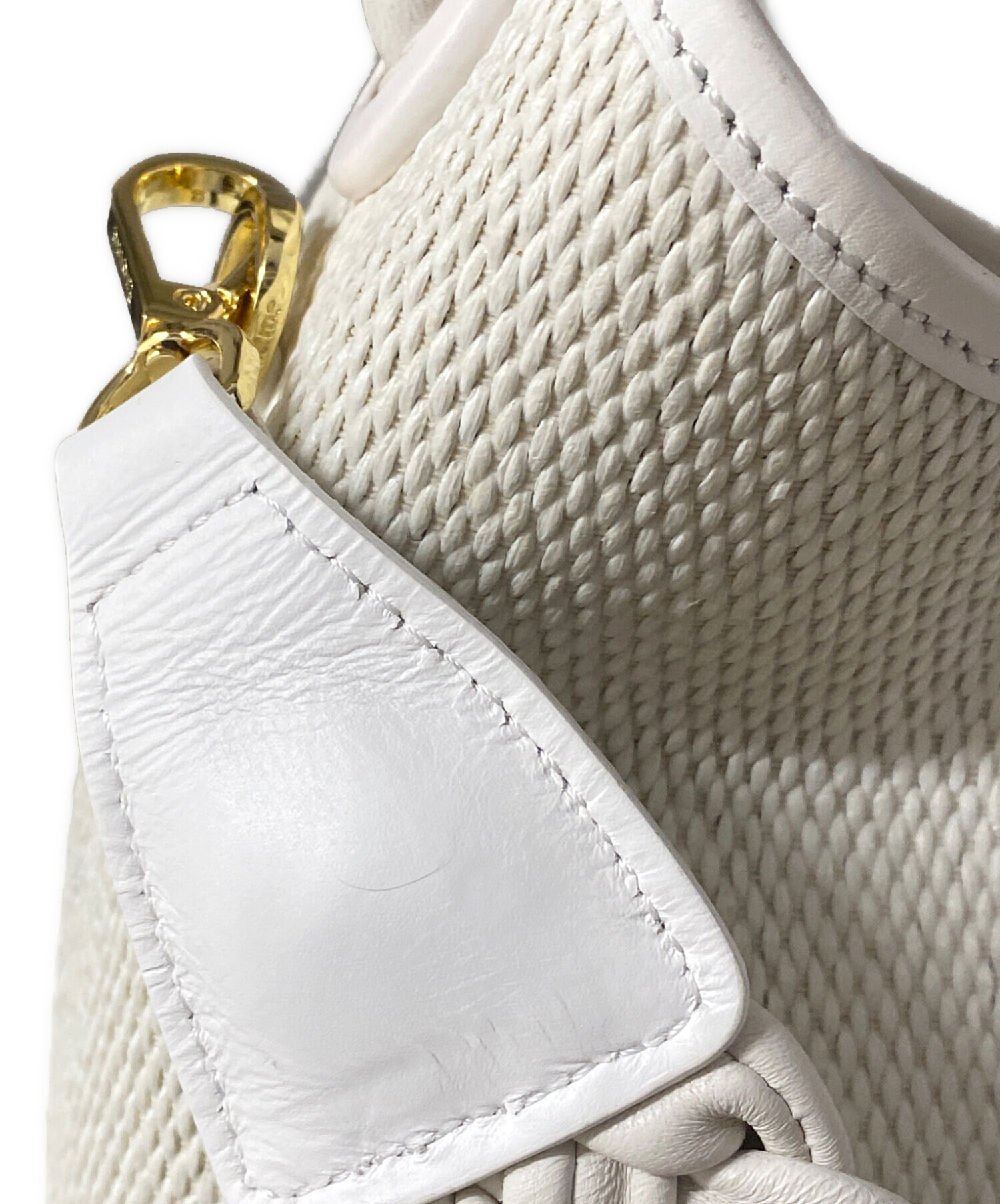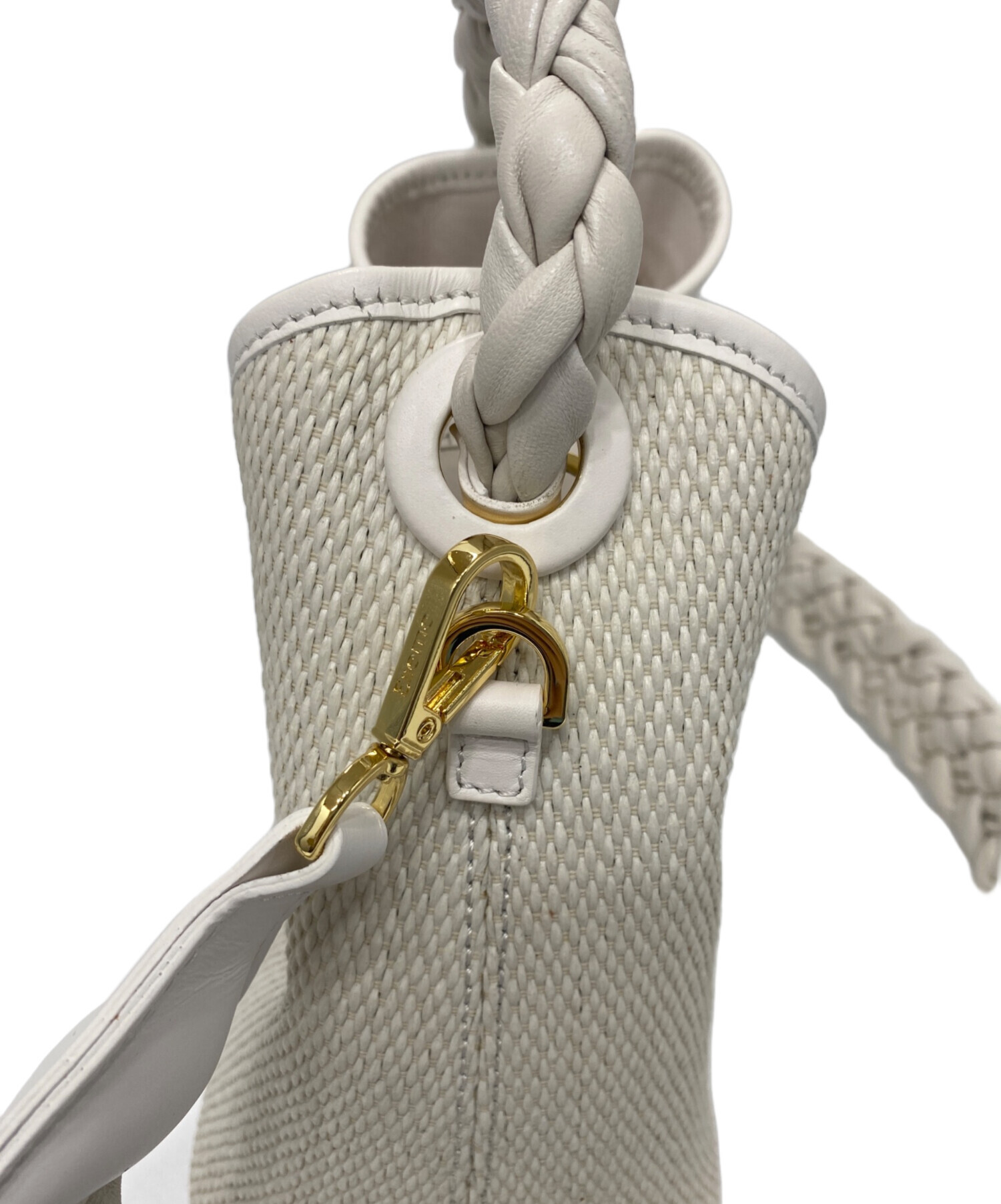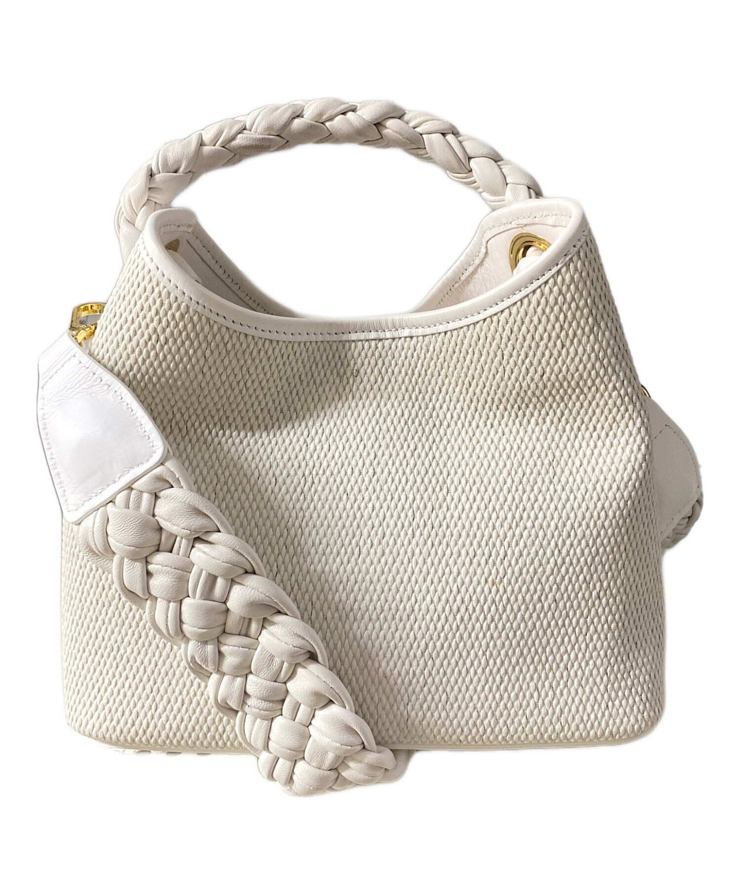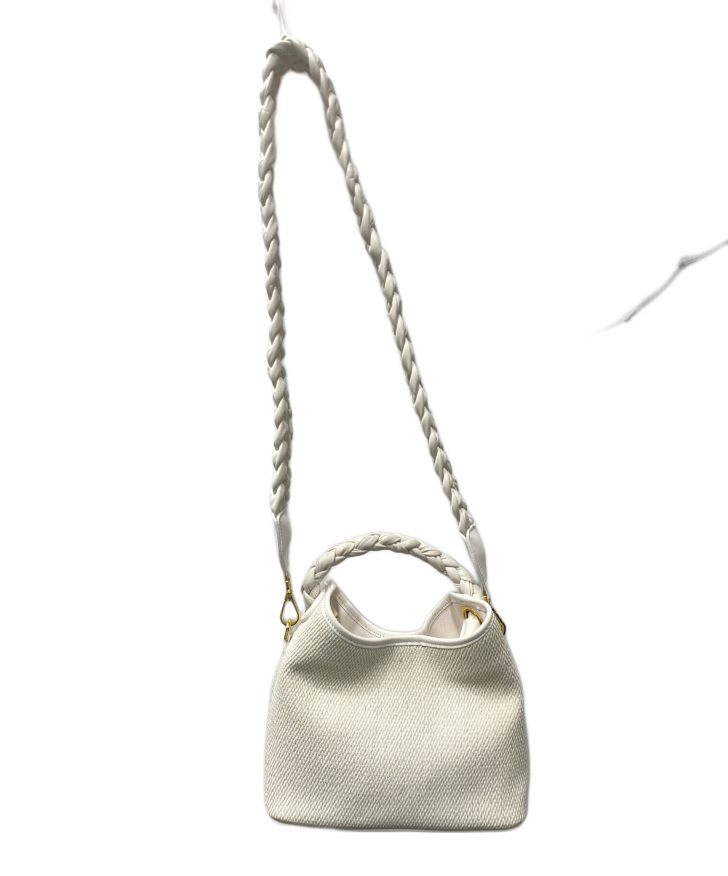 • elleme(エレメ)elleme (エレメ) ラフィアハンドル 2WAYショルダーバッグ ホワイトの古着・服飾アイテム ストラップ シワ・小ヨゴレ有