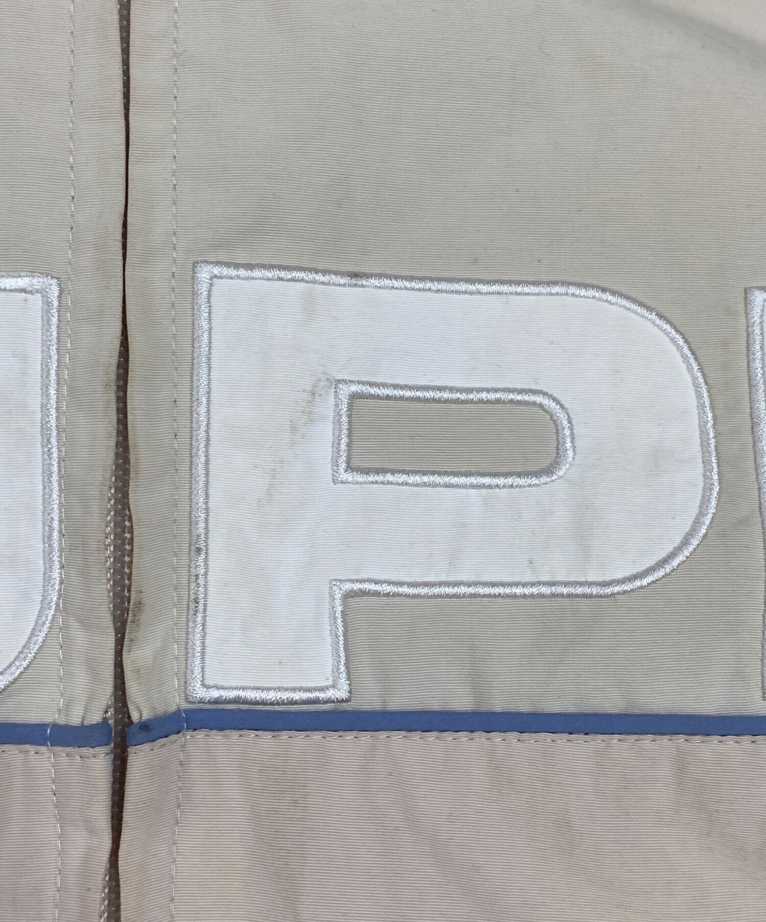 • SUPREME(シュプリーム)SUPREME (シュプリーム) Paneled Track Jacket ベージュ サイズ:Sの古着・服飾アイテム ロゴ部分 小ヨゴレ有