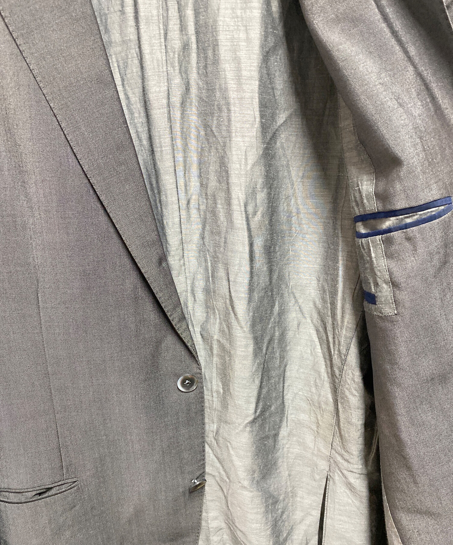 目立つシミや汚れ、におい等がある場合は商品画像や説明文にて極力表記させていただいておりますが、中古品という商品の特性上、全ての瑕疵や不備、洋服直し箇所を撮影・記載をすることは難しくなっております。また、ほとんどのアイテムは店頭と併売しておりますため、出品掲載時からコンディションが変動している場合もございます。あらかじめご了承くださいませ。