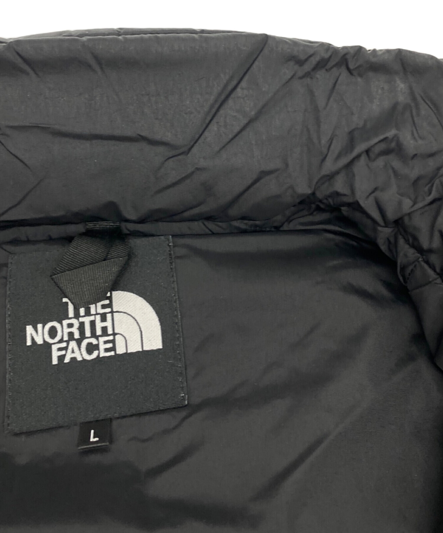 • THE NORTH FACE(ザ ノース フェイス)THE NORTH FACE (ザ ノース フェイス) ショートヌプシジャケット ブラック サイズ:Lの古着・服飾アイテム 裾裏ヨゴレ