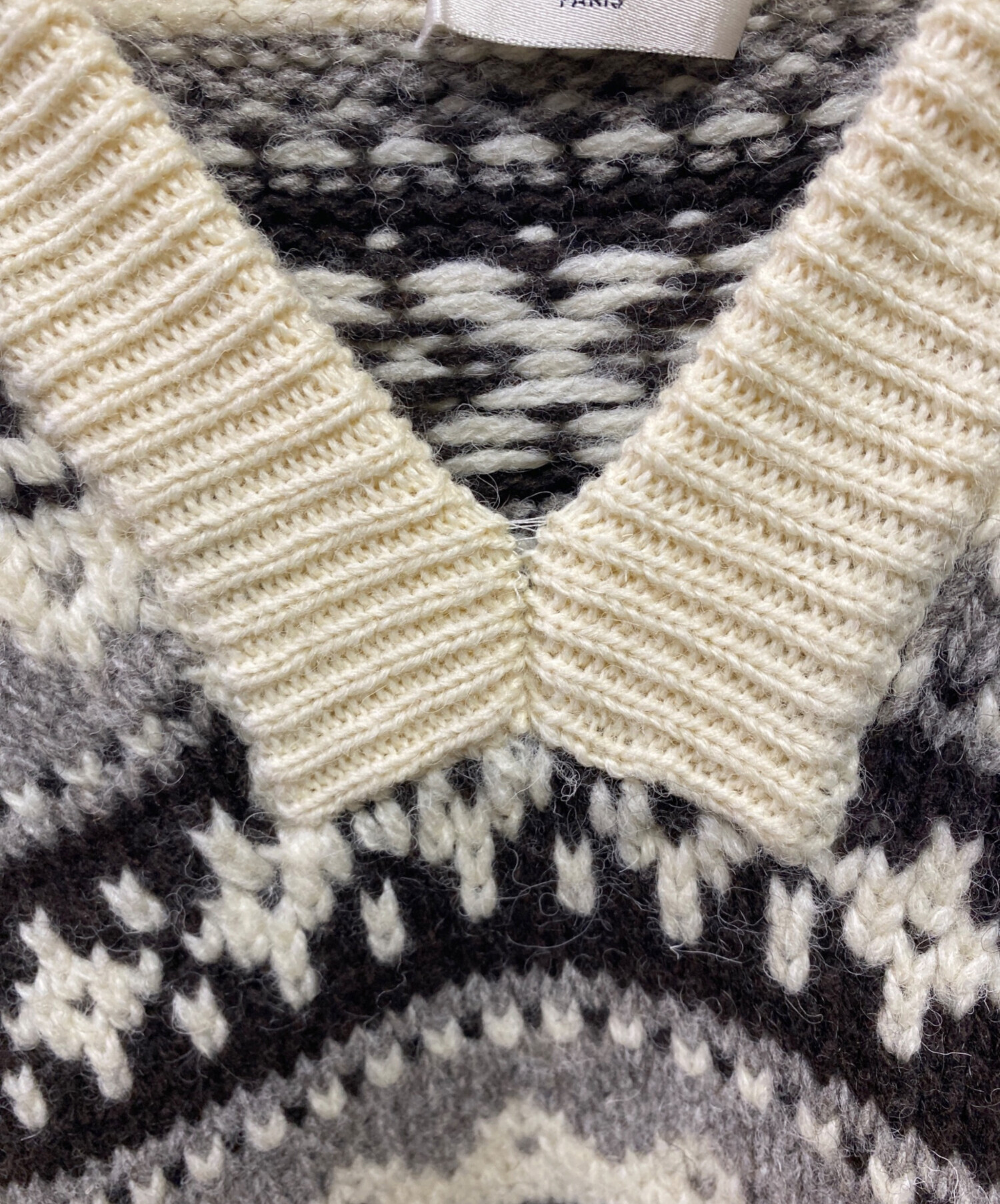 • CELINE(セリーヌ)CELINE (セリーヌ) Baja fair isle Shetland wool hoodie ベージュ サイズ:Sの古着・服飾アイテム 若干の毛羽立ち