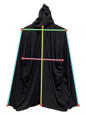 首の縫い合わせの中心から裾までの長さ