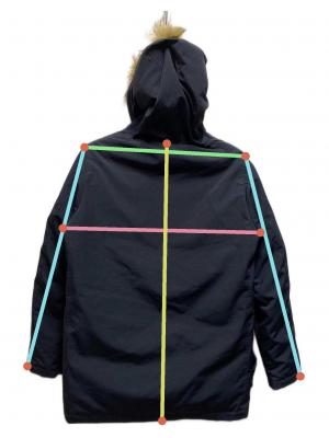 | 素材 | 表地:ポリエステル82% 綿18% 裏地:ポリエステル100% 詰物:ダウン80% フェザー20% リブ部分:アクリル88% ポリエステル11% ポリウレタン1% ファー部分:ポリエステル100% パイル アクリル系59% アクリル41% |