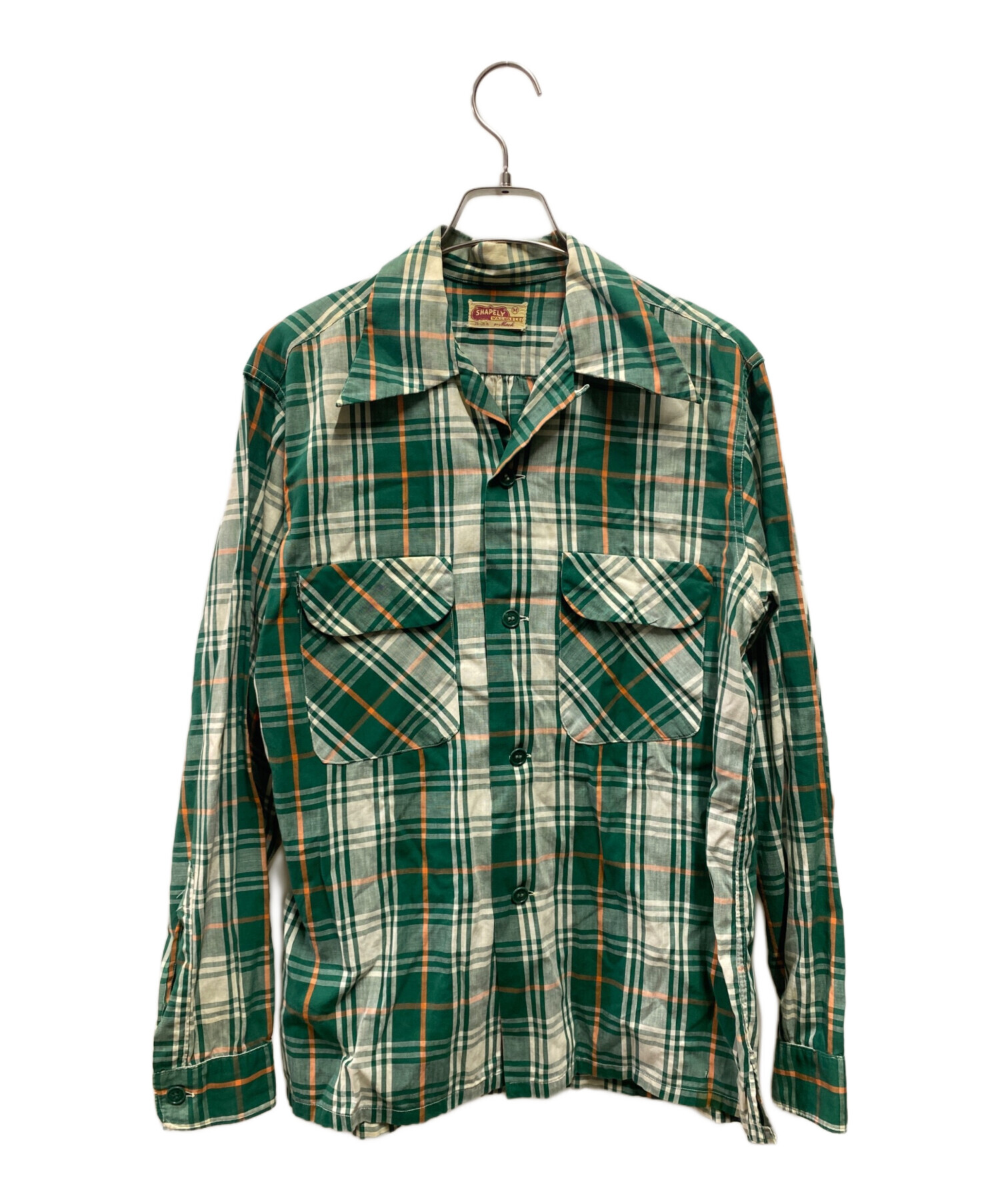 • SHAPELY(シャープレイ)SHAPELY (シャープレイ) 60’S~70’S オープンカラーチェックシャツ グリーン サイズ:Mの古着・服飾アイテム 襟ダメージ