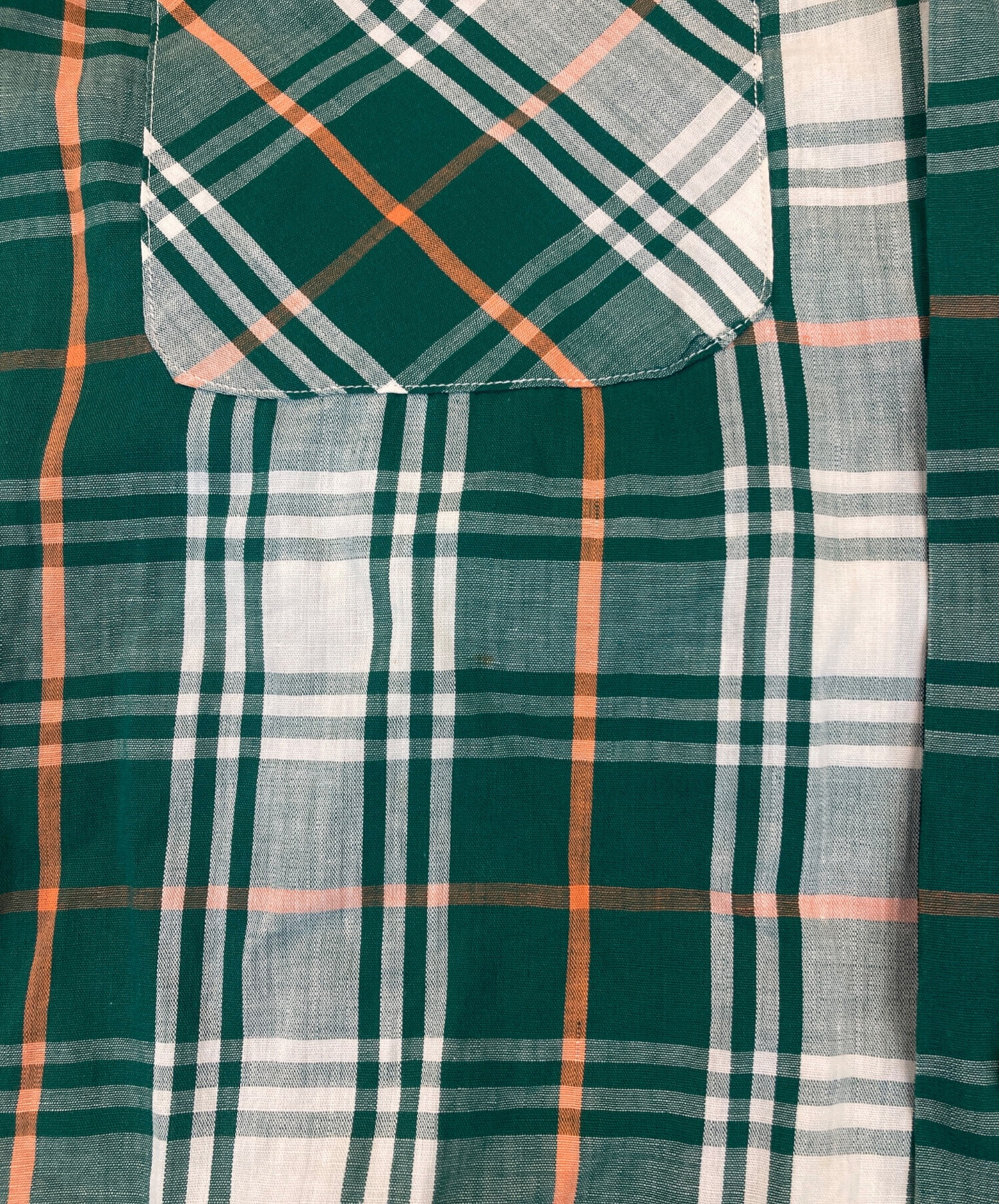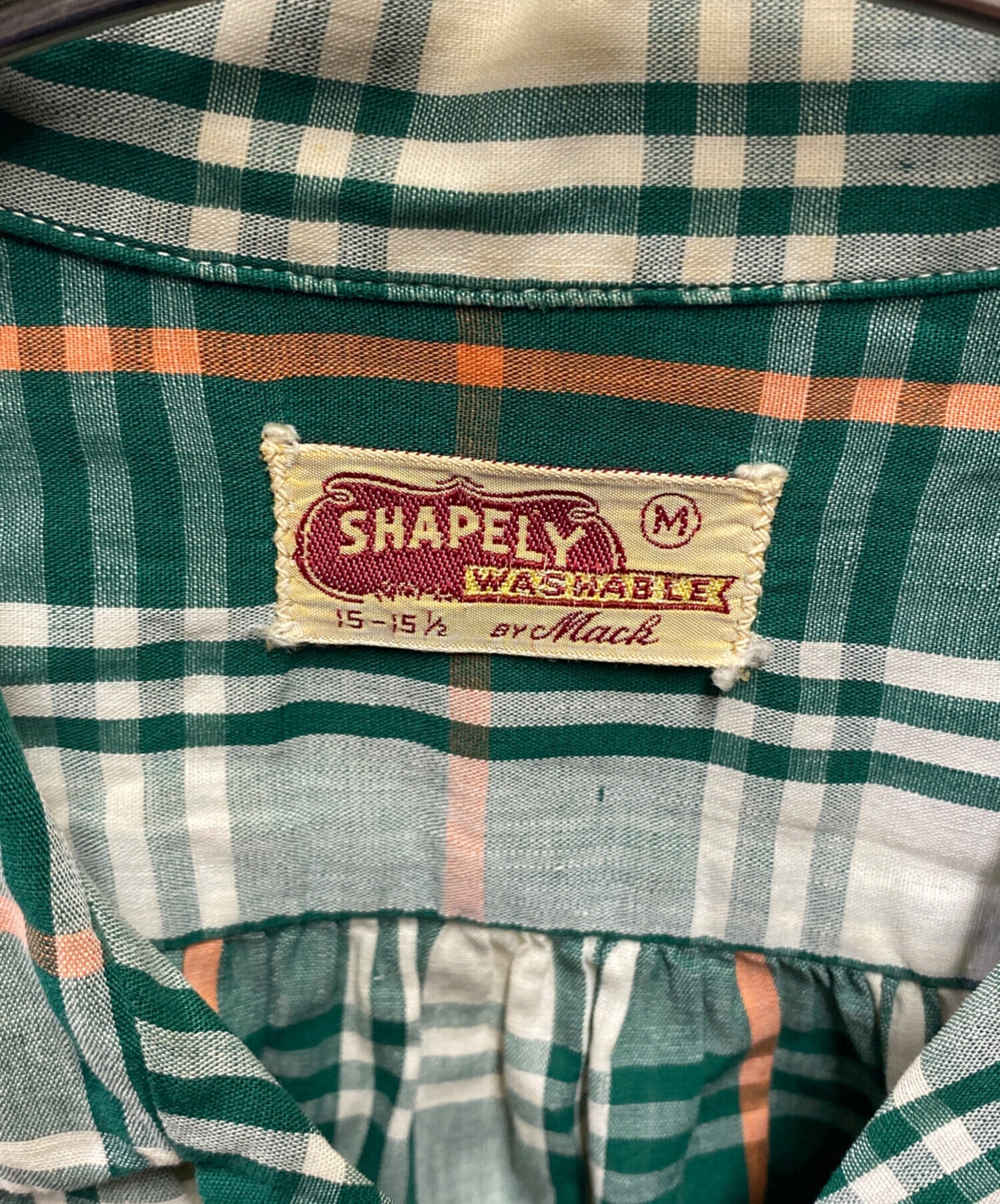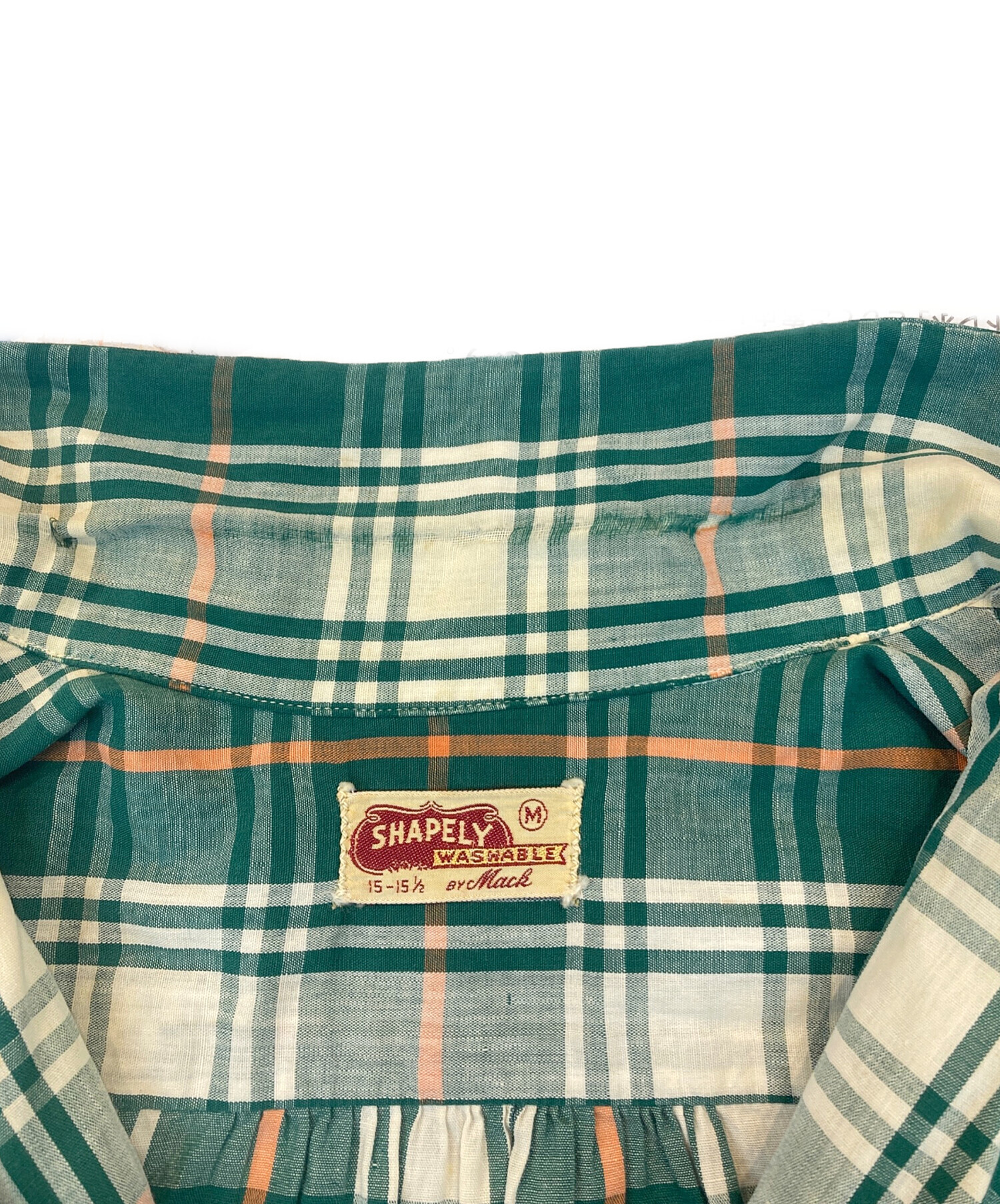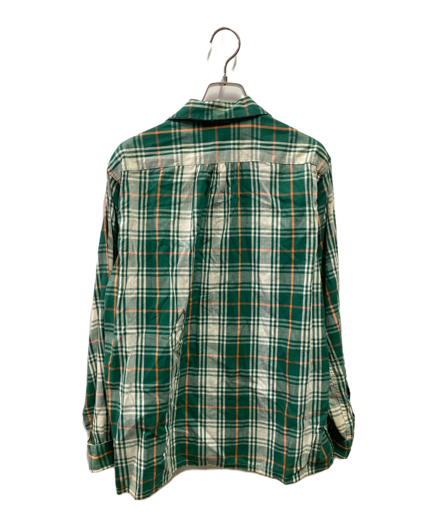 • SHAPELY(シャープレイ)SHAPELY (シャープレイ) 60’S~70’S オープンカラーチェックシャツ グリーン サイズ:Mの古着・服飾アイテム ヨゴレ