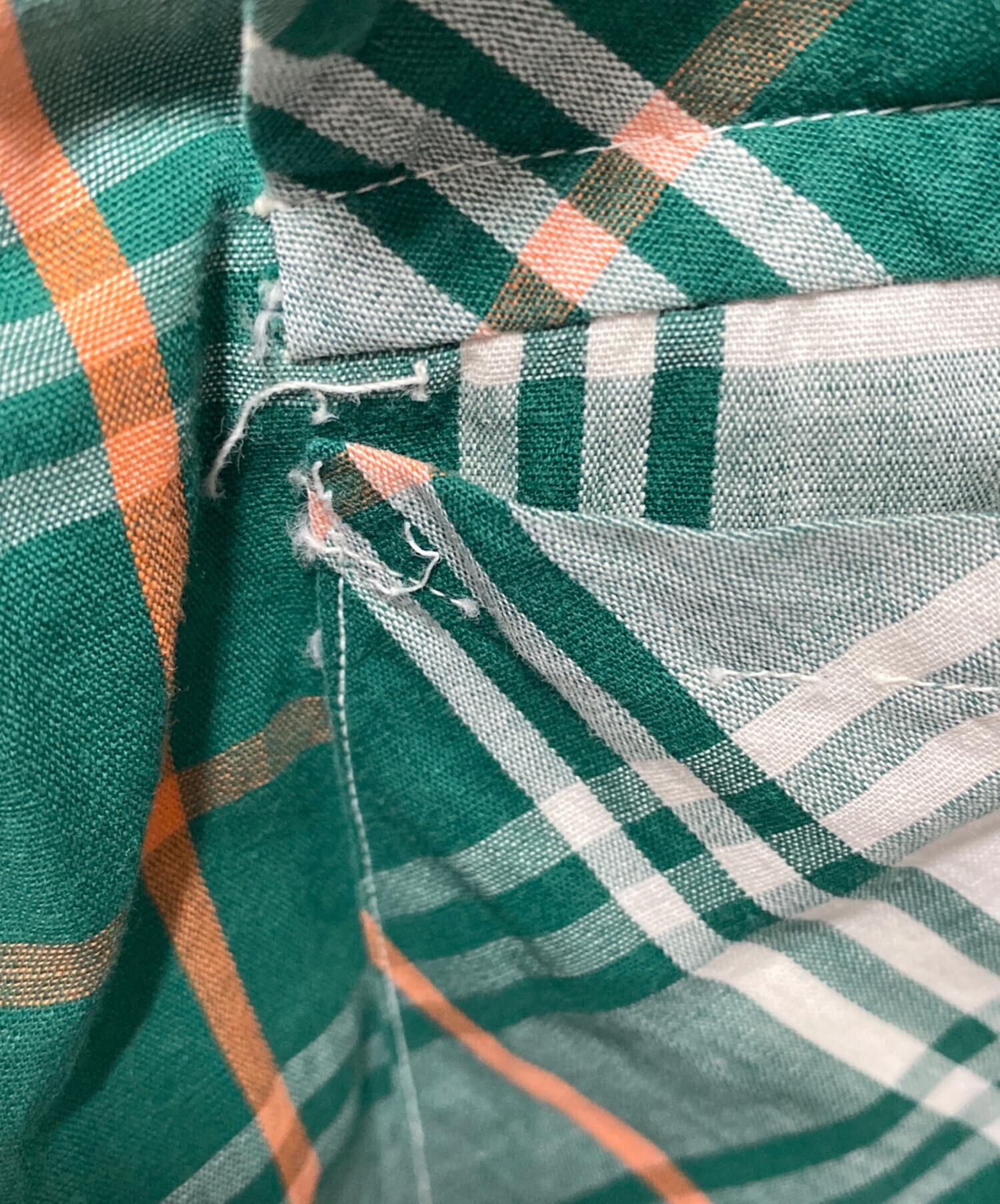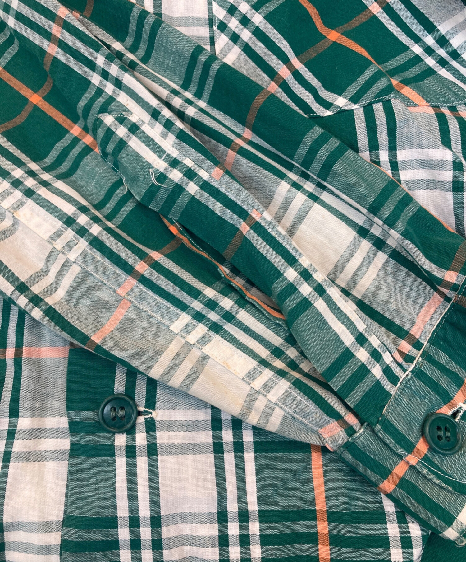 • SHAPELY(シャープレイ)SHAPELY (シャープレイ) 60’S~70’S オープンカラーチェックシャツ グリーン サイズ:Mの古着・服飾アイテム 袖小穴