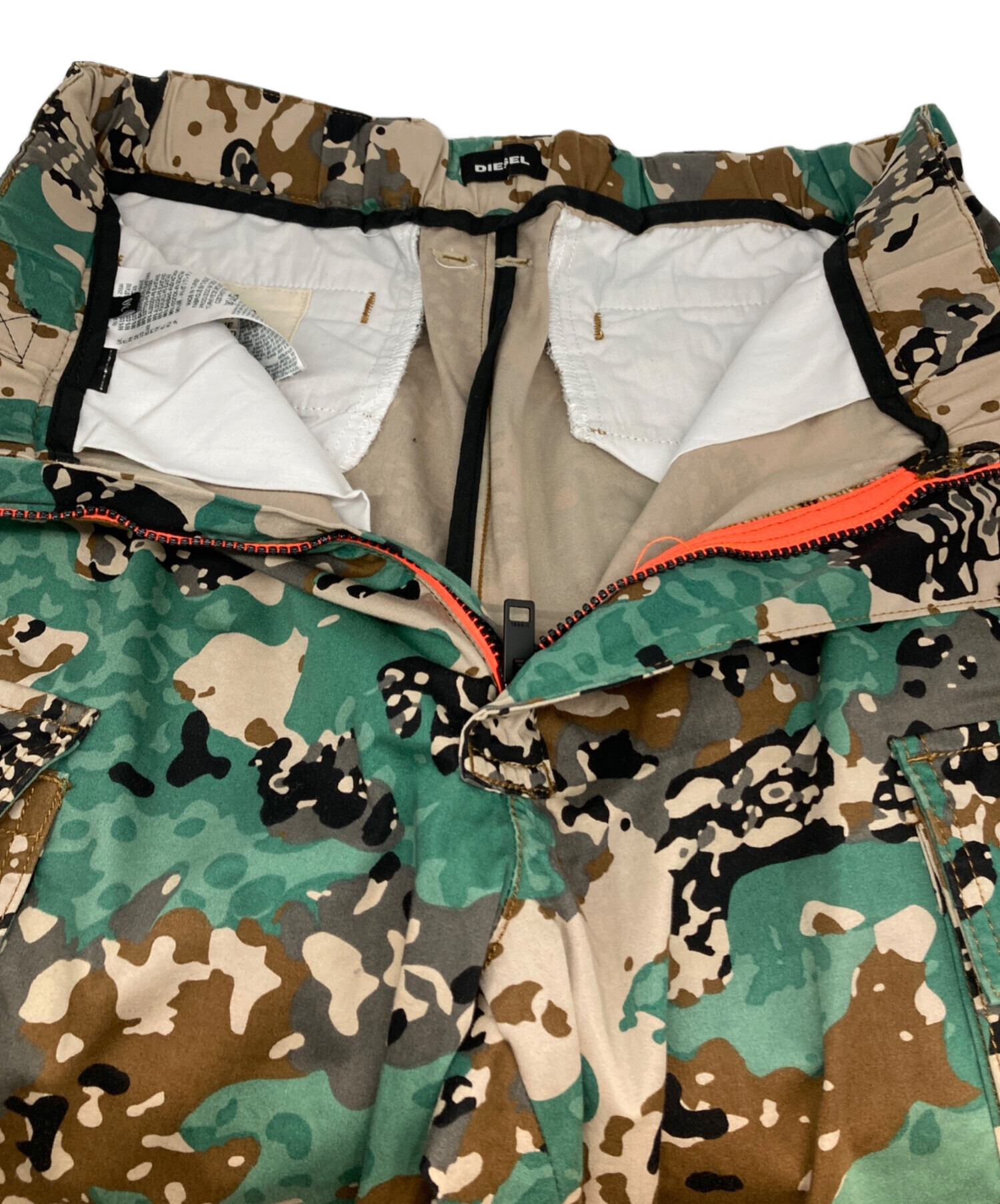 • DIESEL(ディーゼル)DIESEL (ディーゼル) カモフラカーゴパンツ グリーン サイズ:30の古着・服飾アイテム ポケット裏面内部ヨゴレ